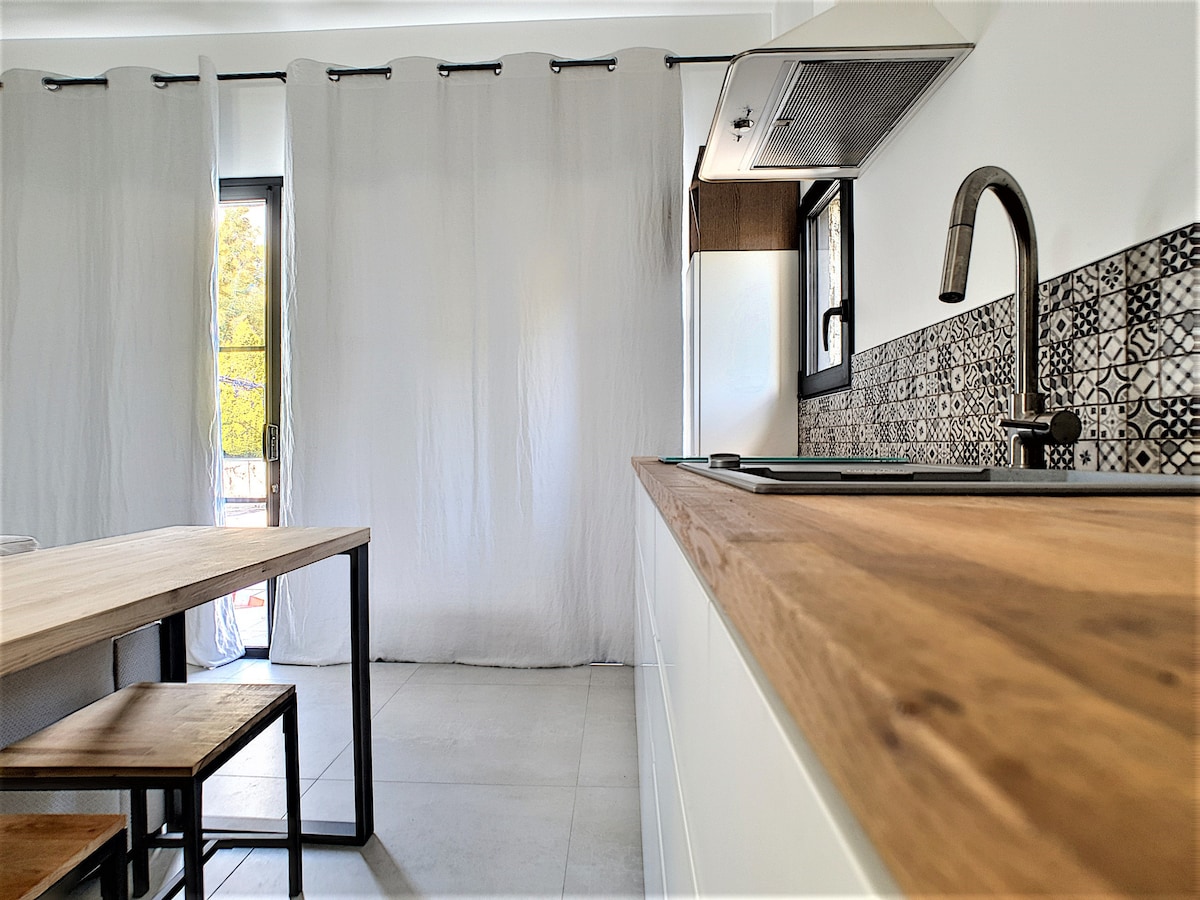 Situé dans un petit village du Luberon où vous trouverez épicerie, café, restaurants, tennis… à 30 mm d’Aix-en-Provence et à 1 h des Calanques de Cassis et de Marseille…Le gîte de 30 m2, en rez de jardin de notre maison provençale est situé dans une pinède et bénéficie d'une vue exceptionnelle sur les vignes et la montagne Ste Victoire. Il se compose de: chambre confort lit double 160cm, 1 salon + kitchenette, salle de bain, WC, avec terrasse/BBQ, accès piscine chaufée et terrain de pétanque.