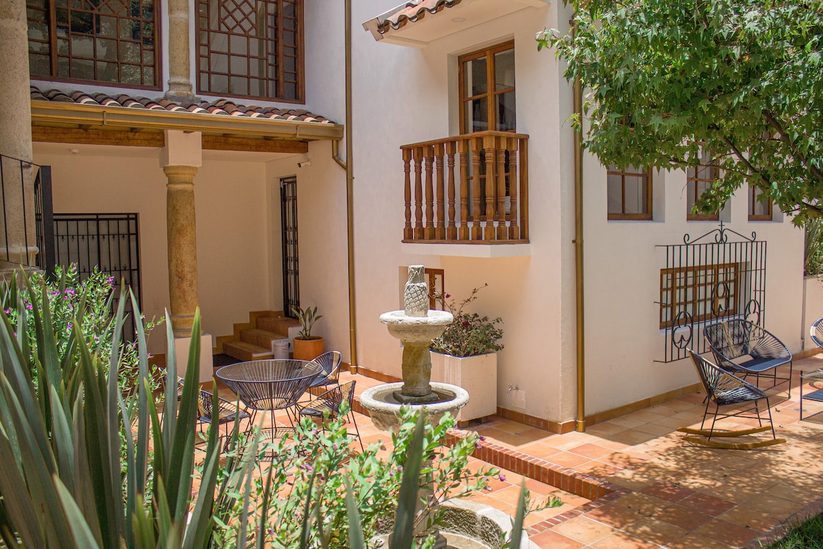 Llegaste a un lugar acogedor, romántico y con mucha luz natural. Tenemos un lindo balcón privado con vista a la montaña de Monserrate y la ciudad. Además el área de la sala con chimenea o el altillo con hamaca y otras vistas a la ciudad lo hace un ambiente sereno y lleno de paz. La ubicación es ideal: Restaurantes, teatros, museos y calles emblemáticas. Es perfecto para parejas, familias pequeñas, viajeros de negocios o turistas que quieren vivir el ambiente de una casa patrimonio de Bogotá.