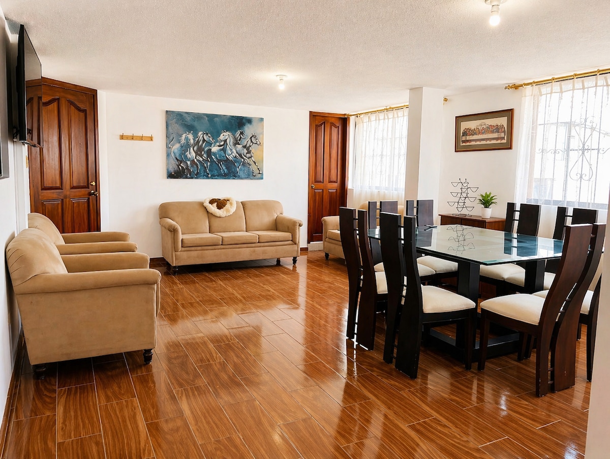 Este elegante alojamiento de estilo colonial, amplio y cómodo con una ubicación privilegiada frente al Ministerio del Interior, cerca de todo, restaurantes, bancos, universidades, centros comerciales, transporte, museos, centros de diversión, supermercados, a 10 minutos del Centro Histórico. Es un alojamiento ideal para viajes en grupo y familias les garantizo una estadía confortable e inolvidable.