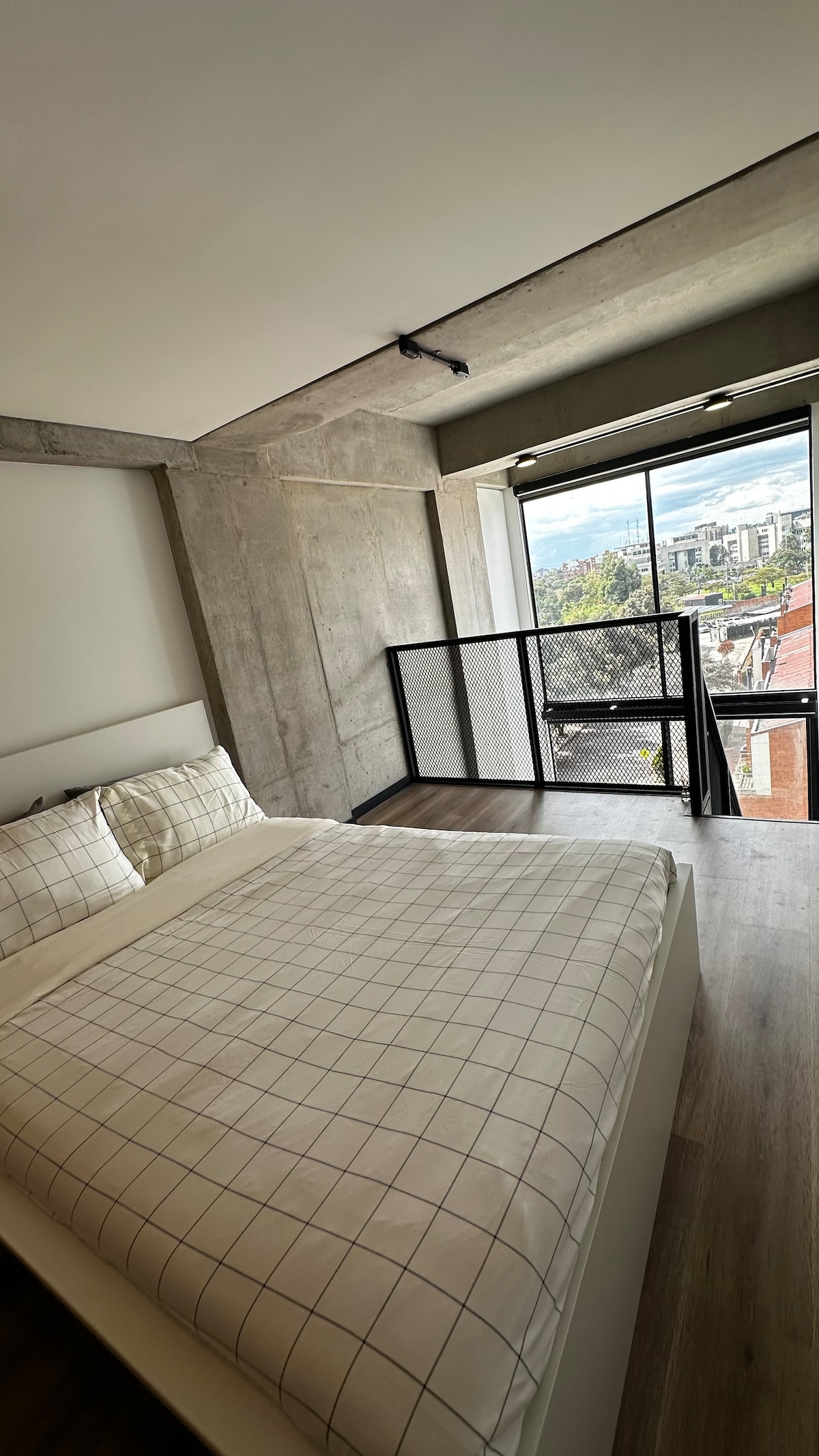 Hermoso apartaestudio con un espacio abierto y luminoso con vista exterior y excelente diseño. Una cama extradoble comoda, un sofacama y una cuna. Cocina full equipada. Conexión wifi de alta velocidad (500M). Ubicado en una zona tranquila y segura cerca de Corferias, embajada americana, Movistar, aeropuerto y transporte público. El edificio tiene lavanderia y una amplia zona de coworking y salas de reuniones. Ideal para parejas o familias pequeñas que buscan comodidad y estilo.