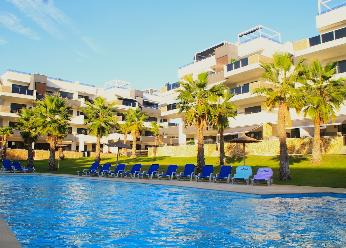Cómodo apartamento de 88 m2 en una urbanización cerrada Jumilla III, perfecta para unas vacaciones. - 2 dormitorios. - 2 baños. - Sala de estar conectada a la cocina y al comedor. - terraza con vistas al mar. - acceso a la zona común en el tejado del edificio. - acceso a la piscina de la urbanización. Cerca de playas, restaurantes y tiendas, a 5 minutos del centro comercial La Zenia, a 45 minutos del aeropuerto de Alicante. ¡Reserva tu estancia y maravíllate en la Costa Blanca!