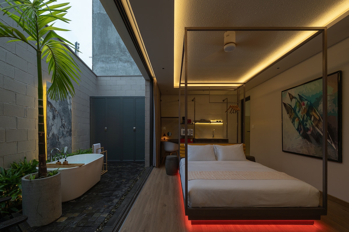 Situado en el centro de la ciudad de Phan Thiet, desde nuestro lugar, se puede acceder fácilmente a la cocina local, al supermercado, al café y a solo 1,5 km de la playa de Doi Duong. Este estudio de 50 m2 se encuentra detrás de una villa, con entrada privada y seguridad con llave magnética. Hay una cocina pequeña separada, baño, lavadora y secadora y una bañera al aire libre. El patio delantero es un espacio común donde puedes estacionar tu motocicleta.m Otras comodidades incluyen wifi de aire acondicionado, televisores, lavadora, sábanas y artículos de tocador.