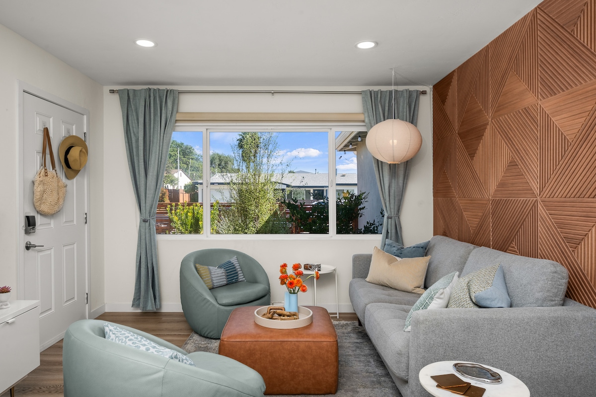 Bright • Walkable • Charming 2BR Craftsman retreat in San Diego's University Heights neighborhood, perfectly located between Hillcrest and North Park. Skylights and large windows fill the home with natural light, while the thoughtfully updated interior offers comfort and style. Enjoy a private fenced yard with outdoor seating, and walk to restaurants, cafes, and a grocery store just two blocks away. Perfect for couples, small groups, or business travelers exploring San Diego.