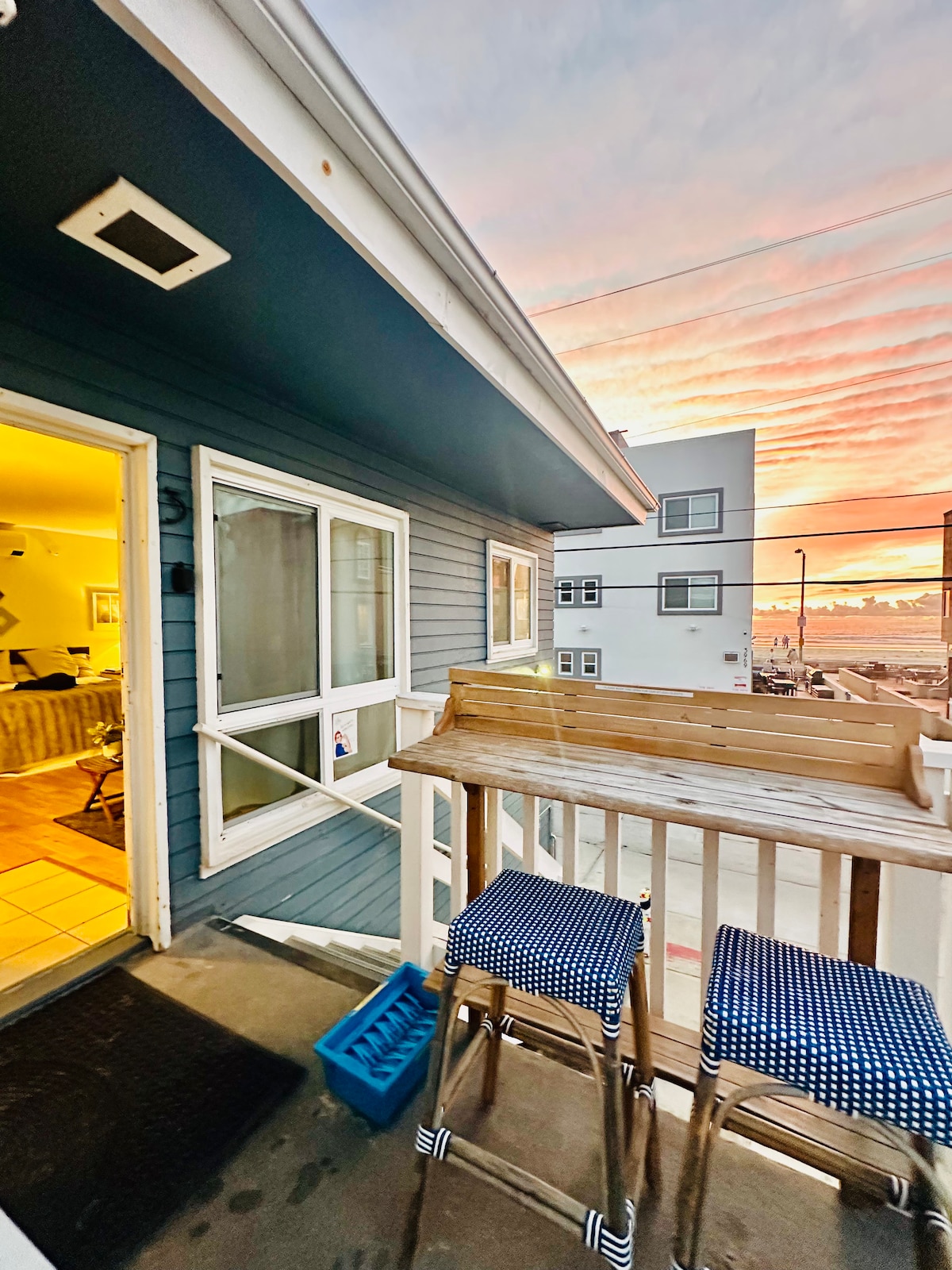 Relájate en este hermoso espacio con una terraza con vista al mar y barbacoa. Estacionamiento para autos de cualquier tamaño. Una casa desde el paseo marítimo y a pocos minutos de restaurantes y tiendas. Tiempo de playa, tiempo de juego, tiempo de surf a solo 20 pasos de la arena. Todo el equipo de playa incluido. Nuestro gran espacio habitable de planta abierta, con abundante luz natural, es perfecto para relajarse. Cocina completa y baño completo. Suministramos todo. Siéntate en la terraza para disfrutar de increíbles vistas al mar al atardecer mientras haces una barbacoa, disfrutas de una bebida o ves el paseo marítimo o los delfines.