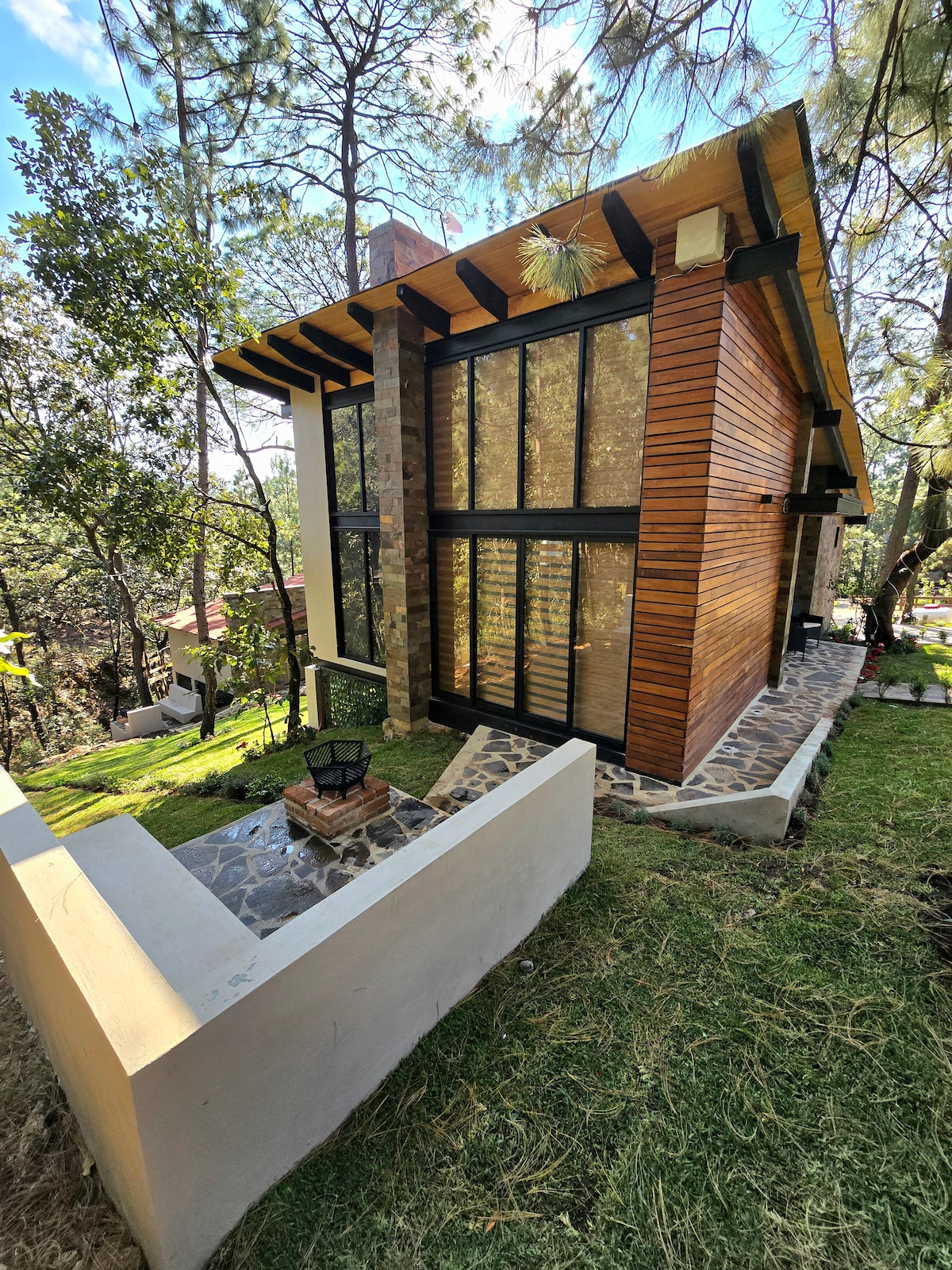Cabaña La Finca está a solo 15 minutos del centro de Mazamitla, en un fraccionamiento con seguridad 24 h, rodeada de pinos y encinos. Ofrece un ambiente tranquilo, privado y relajante en plena naturaleza, con espectaculares vistas a la Sierra del Tigre. Los techos altos y ventanales inundan de luz natural el espacio, creando un entorno cálido y acogedor. Disponemos de 3 recámaras y capacidad hasta 10 personas reservando en el siguiente enlace: https://airbnb.com/h/lafincamazamitla3h