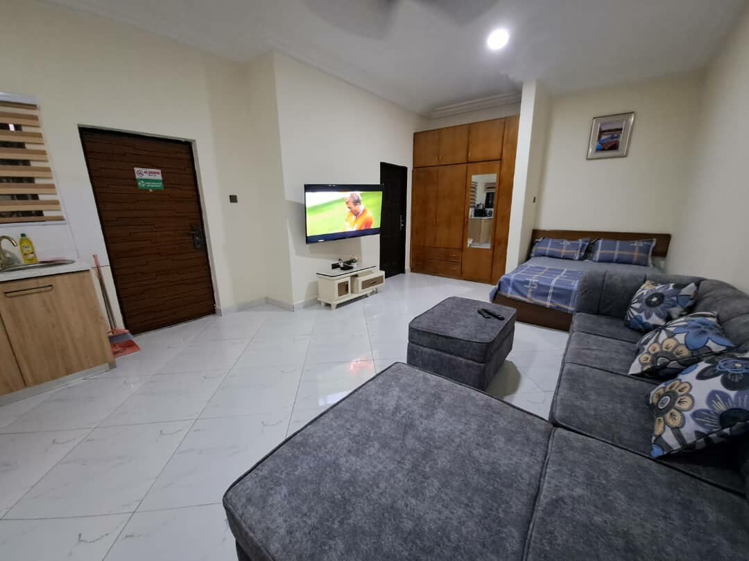 Your 'Home' Away from Home is a lovely Studio Apartment with combine bedroom, living, dining and pretty kitchen area and bathroom. Located much close to East Legon, 10 mins drive from ANC Mall and 23 mins from Kotoka International Airport. The Apt offers seamlessly opportunity to relax peacefully in the cozy beds. There are a variety bars and restaurants around to cater for your eatery needs. The siren environment makes it the perfect location to get away from the buzzy busy everyday life.