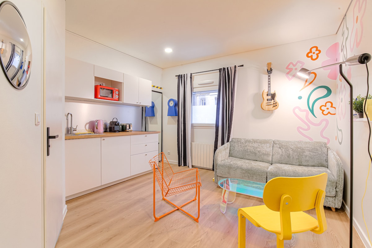 ¡Bienvenido a Elegancia! Este estudio de 26 m², completamente renovado, se encuentra en una 1.ª planta sin ascensor, en pleno corazón de Lyon Part-Dieu. Muy tranquilo gracias a 2 acristalamientos dobles. Muy bien equipado como una habitación de hotel de 4* : cama de 160x200 cm, TV Samsung «The Frame» de 50", Netflix y Amazon Prime Video incluidos, wifi de fibra, aire acondicionado reversible, cocina equipada con cafetera Nespresso, ¡gran cuarto de baño con ducha a ras de suelo, secador de pelo y espejo de aumento! ¡Muy buena estancia en su casa!