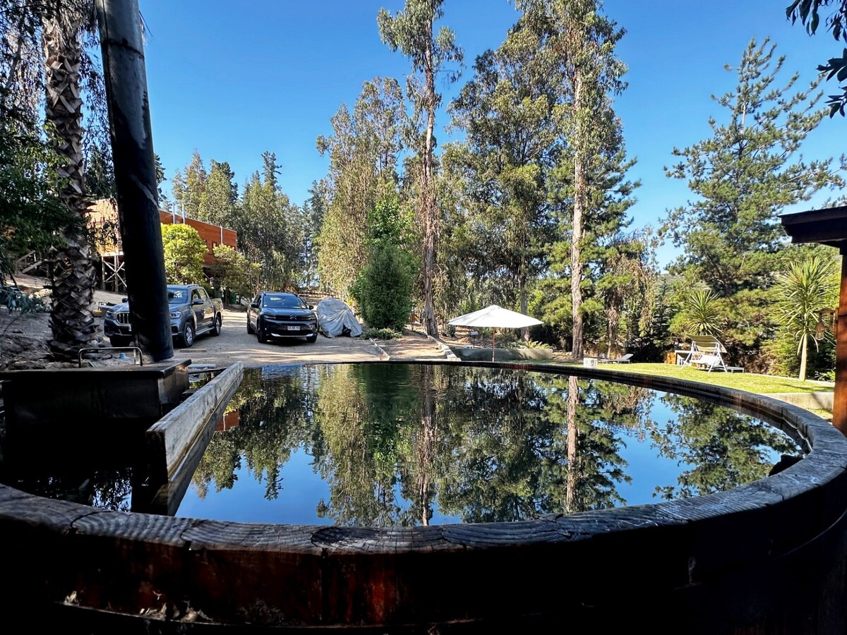 Refugio con Vista Panorámica al Valle Despierta cada mañana con una vista privilegiada del valle, rodeado de un entorno natural que invita al descanso y la desconexión. Lo que ofrecemos: Espacios cálidos y confortables para un descanso pleno. Jacuzzi al aire libre para disfrutar bajo las estrellas. Fogón perfecto para compartir historias o una copa de vino. Entorno natural que invita a caminar, respirar profundo y reconectar.