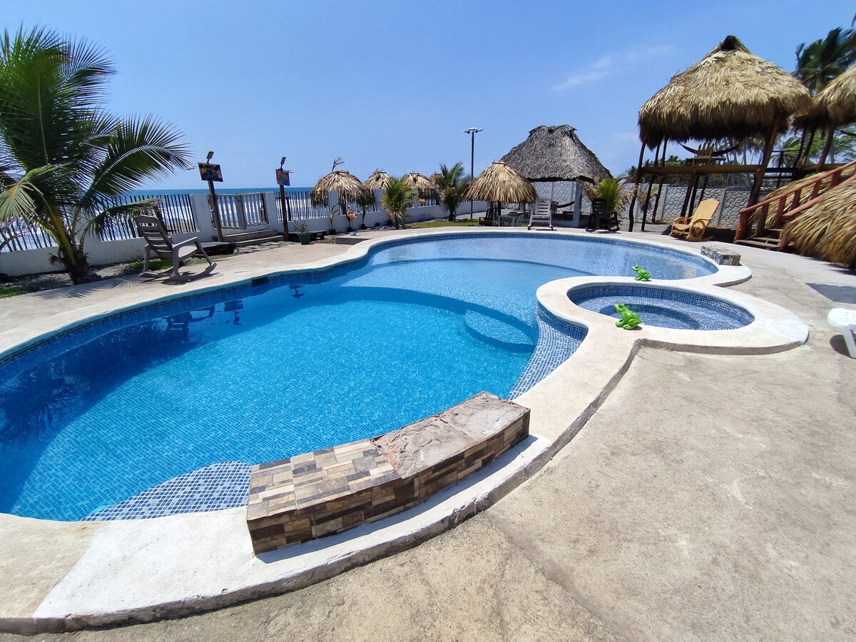 Tortuga 1 - Cabaña familiar frente al mar piscina