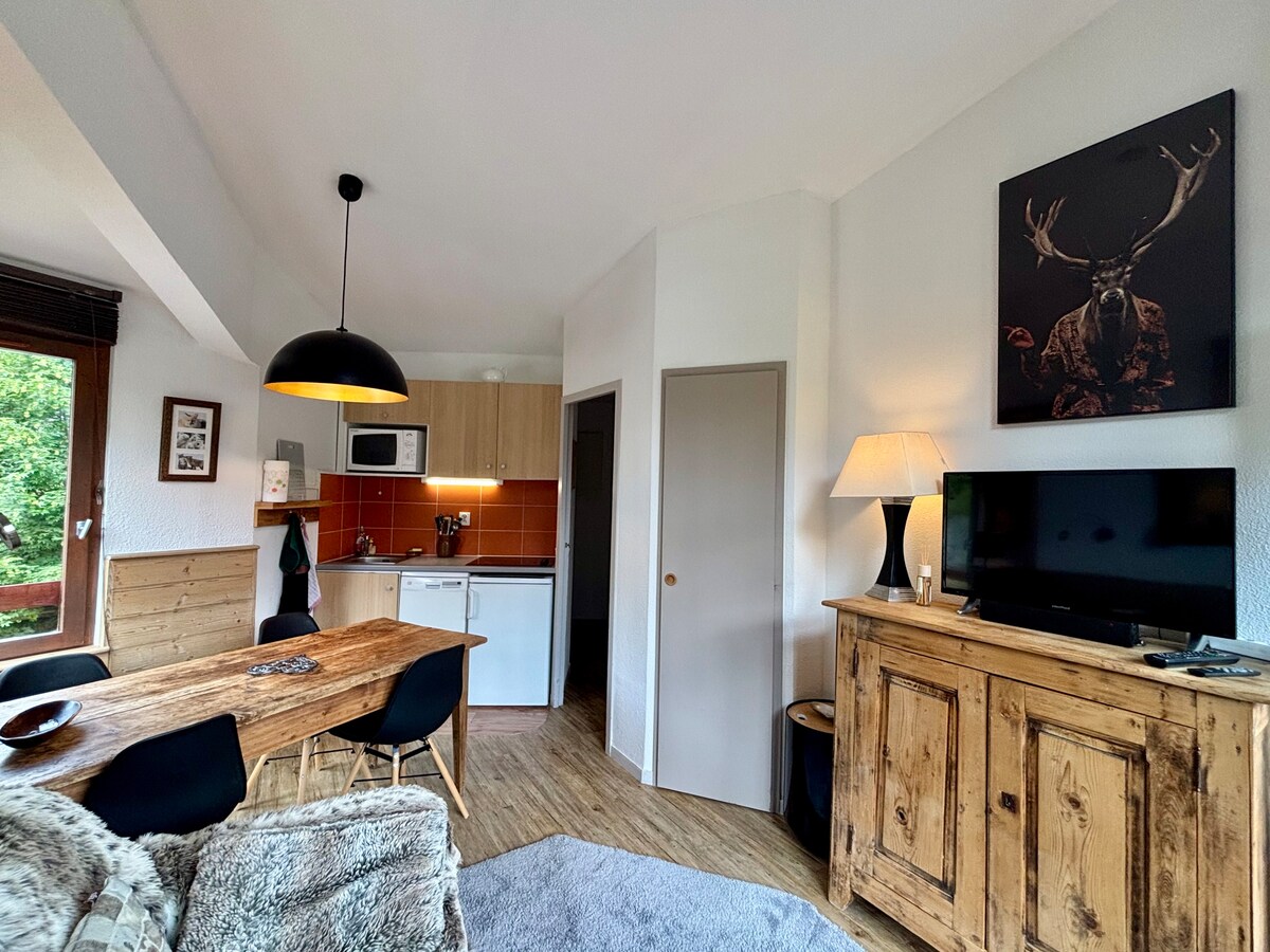 ¡Ideal para su próxima estancia en la montaña! Apartamento reformado y redecorado, orientado al sur, bañado por el sol y la luz. Se encuentra frente a la nieve y a un magnífico bosque de abetos. El apartamento consta de 2 dormitorios. Todos los servicios al pie de la residencia: tiendas, restaurantes, pistas de esquí, tiendas de alquiler de equipos, supermercado, trineo, piscina al aire libre (en verano) ... Entorno totalmente seguro y peatonal. 1 baño y 1 cuarto de ducha. 1 balcón