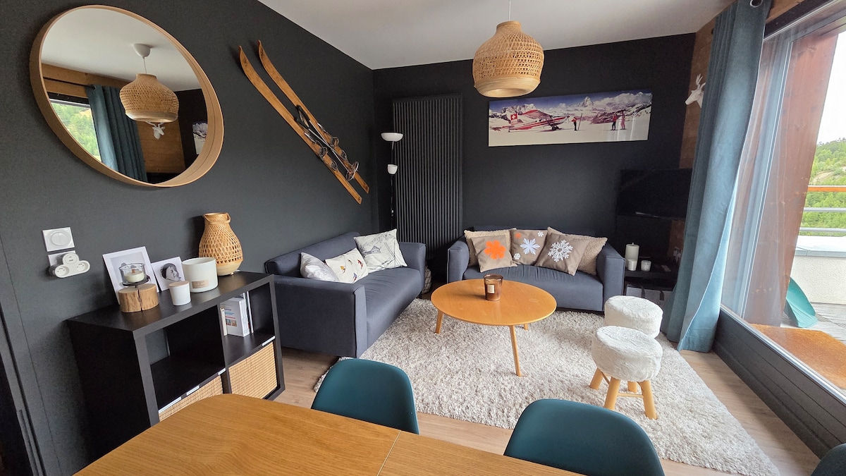 Amplio apartamento de 58 m², totalmente renovado, ideal para 8 personas. Situado en la residencia 3000, está al pie de las pistas: ¡póngase los esquís y vaya directamente a la terraza orientada al sur para disfrutar de un café al sol en nuestras tumbonas! ⛷️Acceso directo a las pistas – ¡Esquíe hasta la terraza! 🌞Gran terraza soleada con vistas despejadas y tumbonas 🛜Wifi incluido para mantenerse conectado 🏠Residencia en el corazón de la estación: tiendas, ESF, piscina, spa, restaurantes a dos pasos