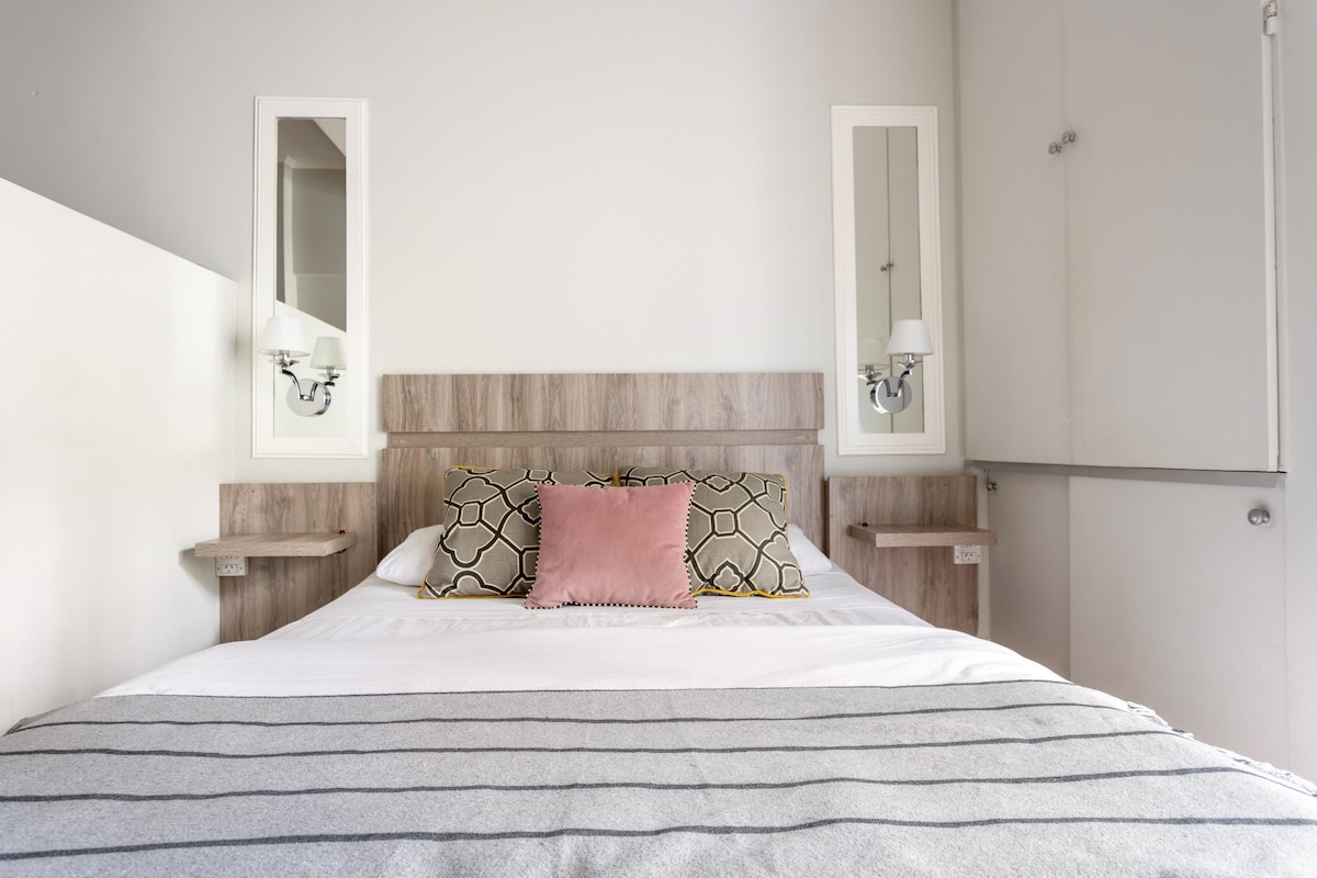 El apartamento está concebido como un espacio de arte y diseño en armonía con el confort, donde lo contemporáneo le da guiños sutiles al pasado en algunos objetos y muebles de estilo. El ambiente es pequeño pero el blanco del piso, paredes y techo, junto con un gran espejo de pared que mira al balcón, dan una sensación de amplitud que se refuerza con el aprovechamiento funcional de cada espacio. El equipamiento es moderno, y todo lo necesario para pasar unos días inolvidables está incluido.