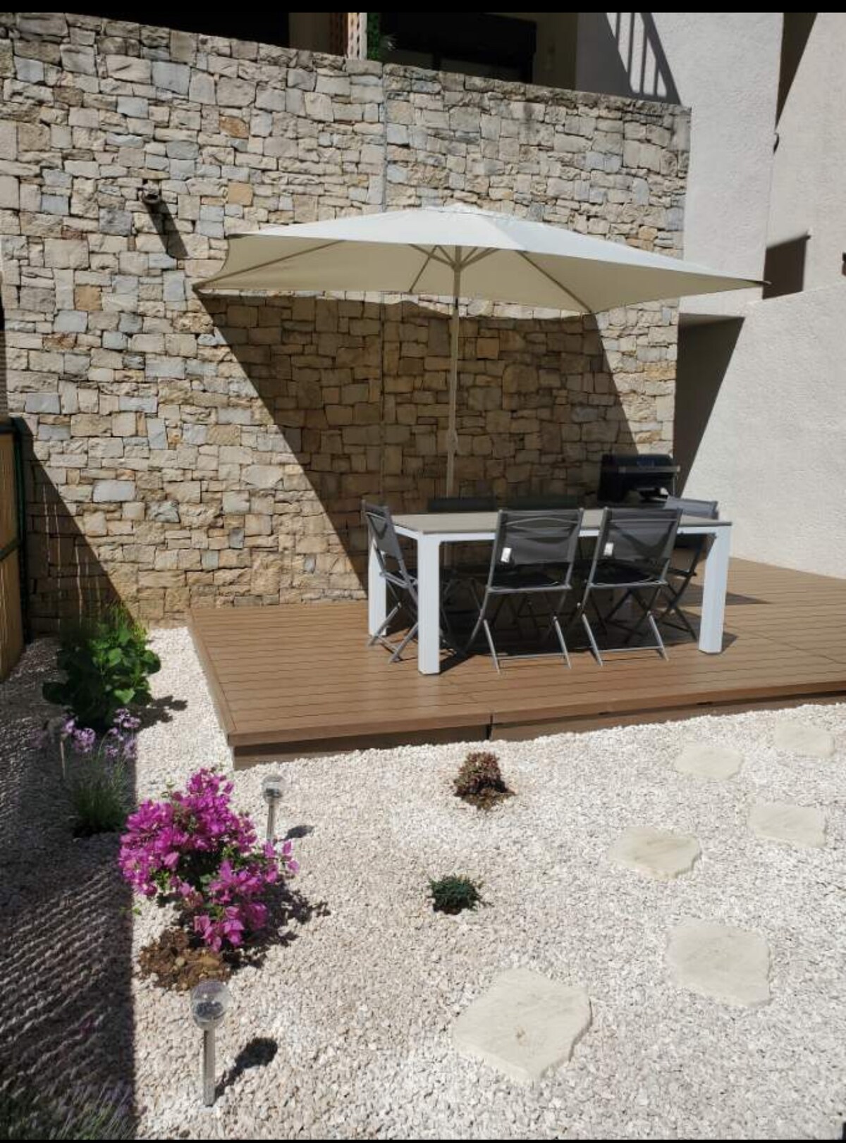 Situado en una bonita aldea provenzal MUY TRANQUILO todo a pie 5 minutos de todas las tiendas, al pie de una colina boscosa y a 15-20 minutos a pie de las playas Casa restaurada a NUEVO de 52 m2 Muy luminoso, sin vecinos Aparcamiento delante de la aldea Garaje disponible para bicicletas y/o motocicletas ¡Mucho CACHÉ! Nota: ¡Tengo otras propiedades en alquiler en el sitio que podrían interesarle!