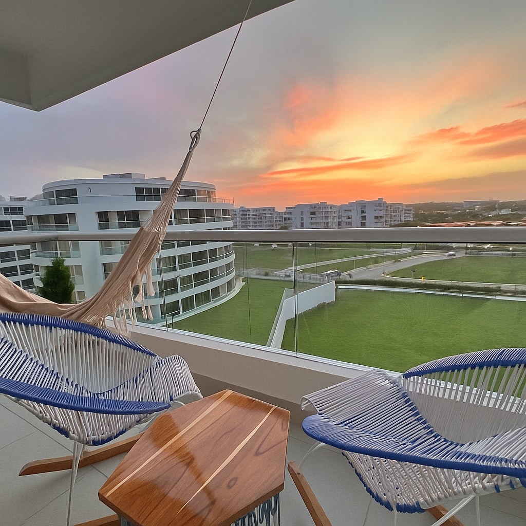 Spectacular apartment with all the comforts of a suite. From the terrace, enjoy breathtaking views of the Ciénaga and direct views of the sea. Located beachfront in the exclusive Morros Eos, with private beach access in a safe, upscale area. The complex features a gym, coworking space, four pools (including a 25-meter semi-Olympic pool), a playground, two jacuzzis, and a Turkish bath. It’s the perfect escape from daily life. What are you waiting for to experience this? Welcome to the new Morros!