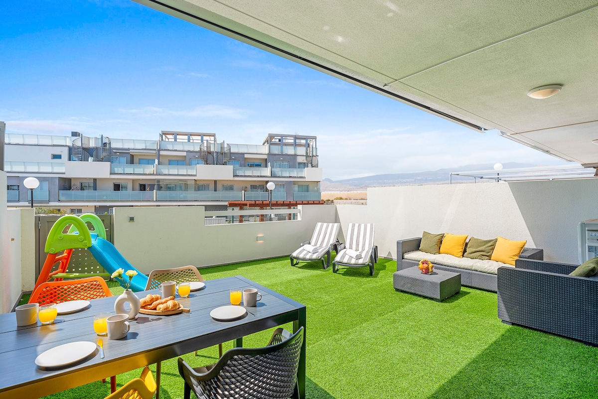 Escape to our brand-new (2025) coastal retreat in La Tejita, Tenerife! This modern apartment comfortably fits 5 guests. Enjoy a spacious private terrace with sea glimpses, a fully equipped kitchen, and access to a community pool. Located just steps from the beautiful La Tejita Beach, it's the perfect serene island getaway. Free parking included.