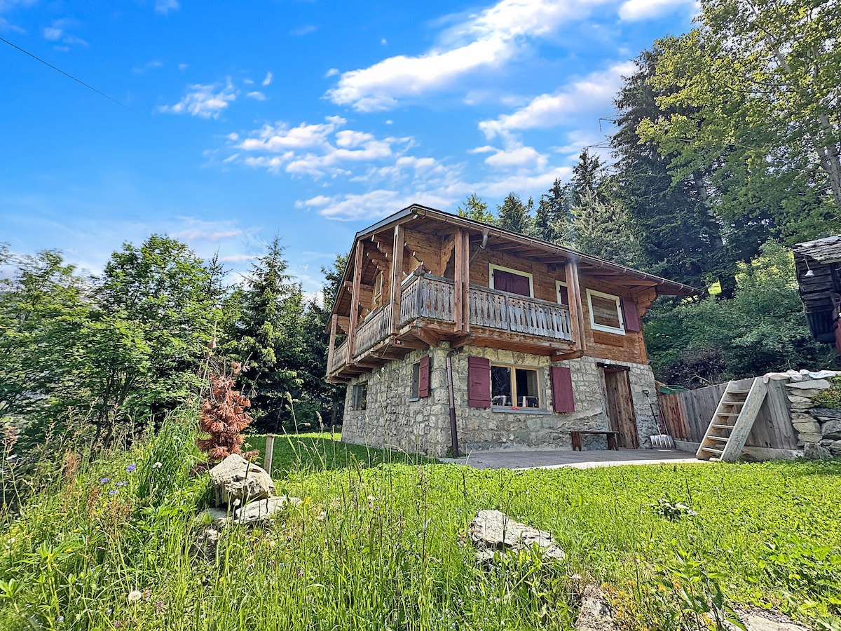 Encantador chalet antiguo de madera y piedra con vistas al Mont Blanc