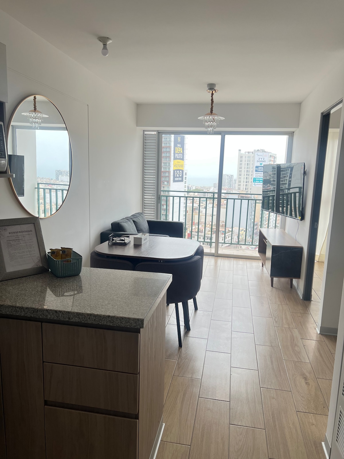 ¡Vive Lima desde el piso 20 con una vista increíble! 🛏️ Cama KING 📺 TV de 65" 🛋️ Cómodo sofá 🍳 Cocina equipada 🏊 Piscina, 🔥 BBQ y 🍸 Lounge Bar (según disponibilidad) 🚗 Estacionamiento por USD 8/noche (según disponibilidad) 🧳 Guarda maletas antes del check-in o tras el check-out Ubicación top entre Miraflores, San Isidro y Surquillo Teniendo 4.96⭐️ y siendo Superhost, te ofrezco una estadía cómoda y segura. ¡Reserva y disfruta Lima desde lo alto, con estilo y confort!