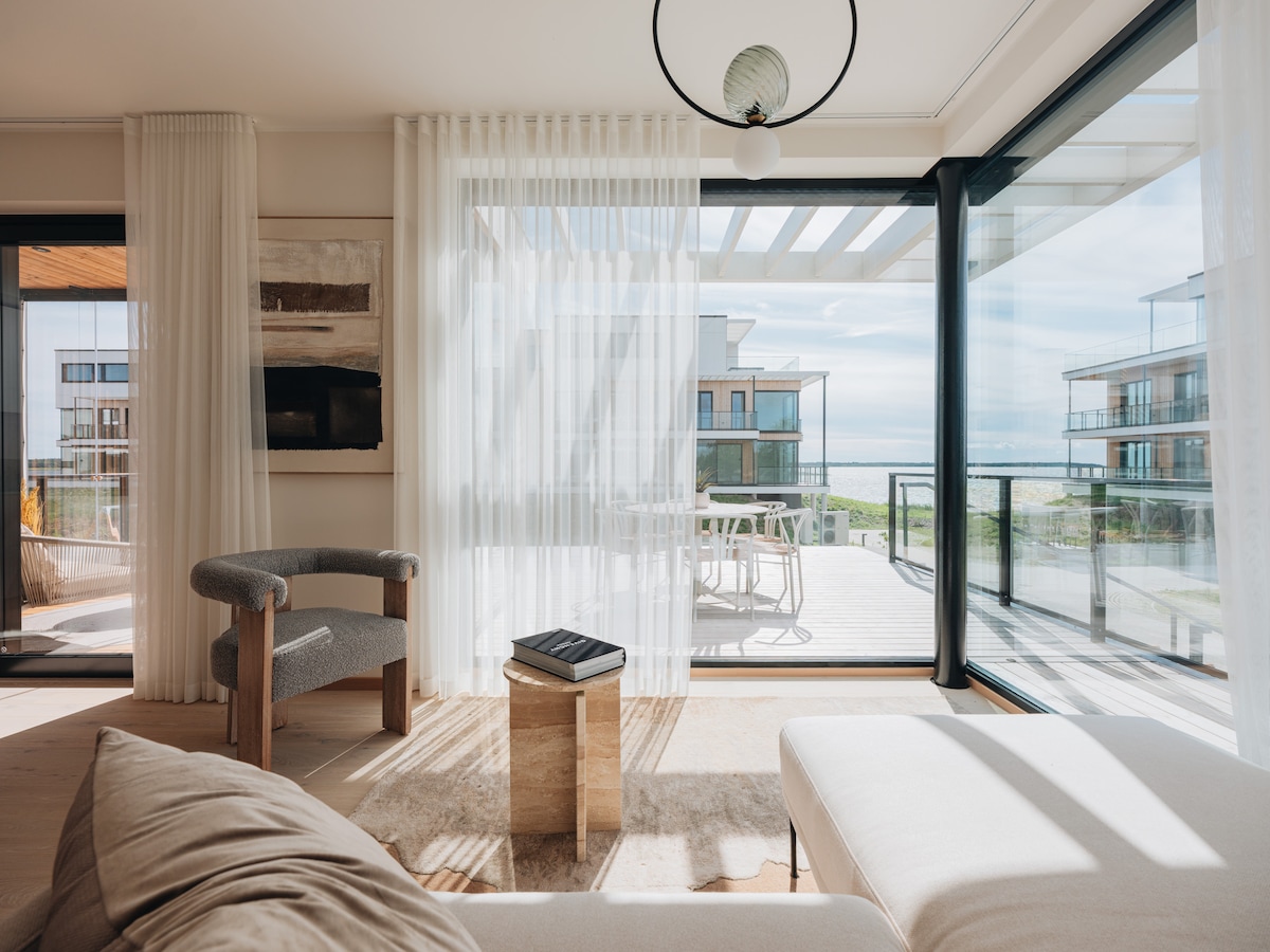Seaside Luxury on Two Floors – A Hidden Gem in Haapsalu Spend your vacation in this stunning two-story apartment located on a peaceful peninsula, surrounded by the sea. Every room offers breathtaking panoramic views of the water. The spacious terrace is faced to south and west and offers the most incredible sunset you have ever seen. Step into a peaceful seaside escape that feels like a chic holiday abroad!