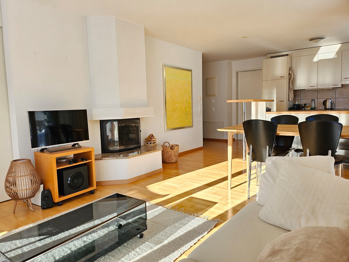 apartamento de 3,5 habitaciones céntrico en un edificio de apartamentos. cocina abierta totalmente equipada, chimenea, 2 balcones, sauna. Estacionamiento subterráneo, ascensor. Punto de partida ideal para caminatas y esquí. Autobús de esquí (gratuito), tiendas (Volg, Denner), oficina de correos, banco, panadería y carnicería muy cerca. También está la oficina de turismo y una buena pizzería justo en este centro del pueblo. Un paso subterráneo peatonal te llevará desde el apartamento a todos estos lugares en 2 minutos.