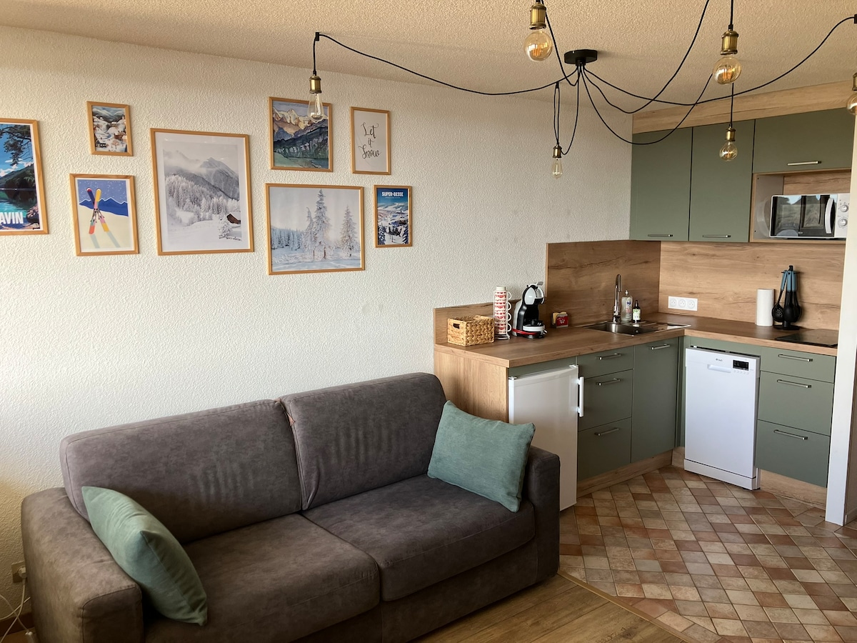 Situado a orillas del lago Chambon, en el corazón del macizo de Sancy y de los volcanes de Auvernia, apartamento de 32 m2 con balcón, en el segundo piso de un edificio de 3 plantas. Cocina equipada (horno, microondas, lavavajillas, nevera-congelador, cafetera, Tassimo...), sala de estar abierta con sofá cama, TV, un dormitorio con cama de matrimonio, cuarto de baño con ducha, lavadora e inodoro. Estaciones de esquí de Super-Besse y Mont-Dore a menos de 20 km. Bañarse, pescar, hacer senderismo...