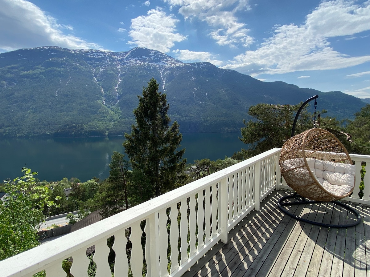 La "Chimenea" fue construida en 2004 con todas las cualidades modernas. Hay cables de calefacción en el piso, terraza privada, un gran horno trasero de leña y una zona de crecimiento justo afuera. La casa incluye un dormitorio y un loft. Justo fuera de la puerta encontrarás populares rutas de senderismo y ciclismo. A 6 minutos en coche del centro de Sogndal, a 4 minutos se encuentra el centro de Kaupanger con tienda de comestibles y el centro de ViteMeir, ¡agradable para grandes y pequeños! A 2 minutos encontrarás piscina, parque infantil y gimnasio.