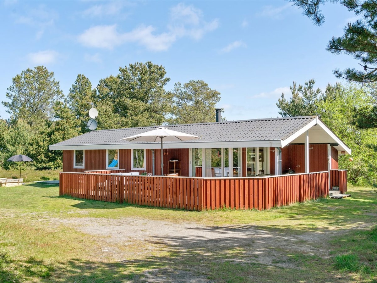 Slap af med hele familien i denne fredfyldte bolig. Nyd naturen både inde og ude med dette sted. Rigtig sommerhus stemning, hvor både strand og golfbane er i gå afstand. Nyd både kolde og varme aftener midt i naturen mens kroppen slapper af i vildmarksbadet.