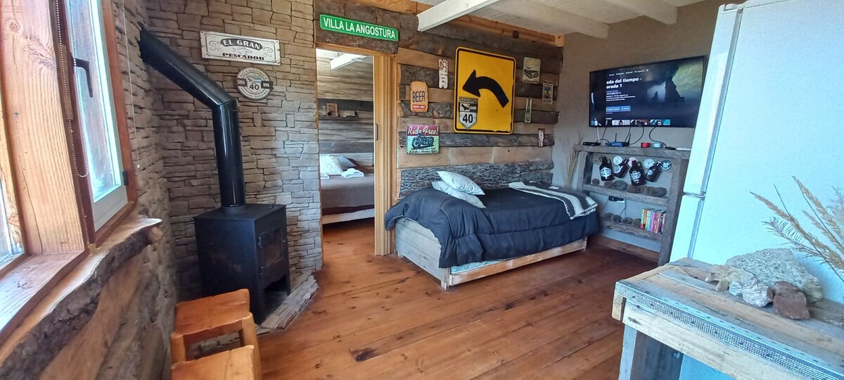 Ideal para caminantes, amantes de la naturaleza...entre árboles nativos, en una roca sobre el lago, entre el silbido del viento y el silencio de la montaña...pusimos esta cabaña que ofrece tranquilidad en un paisaje del sur muy poco frecuentado. Senderismo, pesca o simplemente ocio en un lugar que ofrece naturaleza virgen. Acogedora y cómoda con todo lo que se necesita...sólo trae tu caña de pescar, tu libro, tu comida...del resto, me encargo yo. Hay leña, la vecina hace pancito amasado.