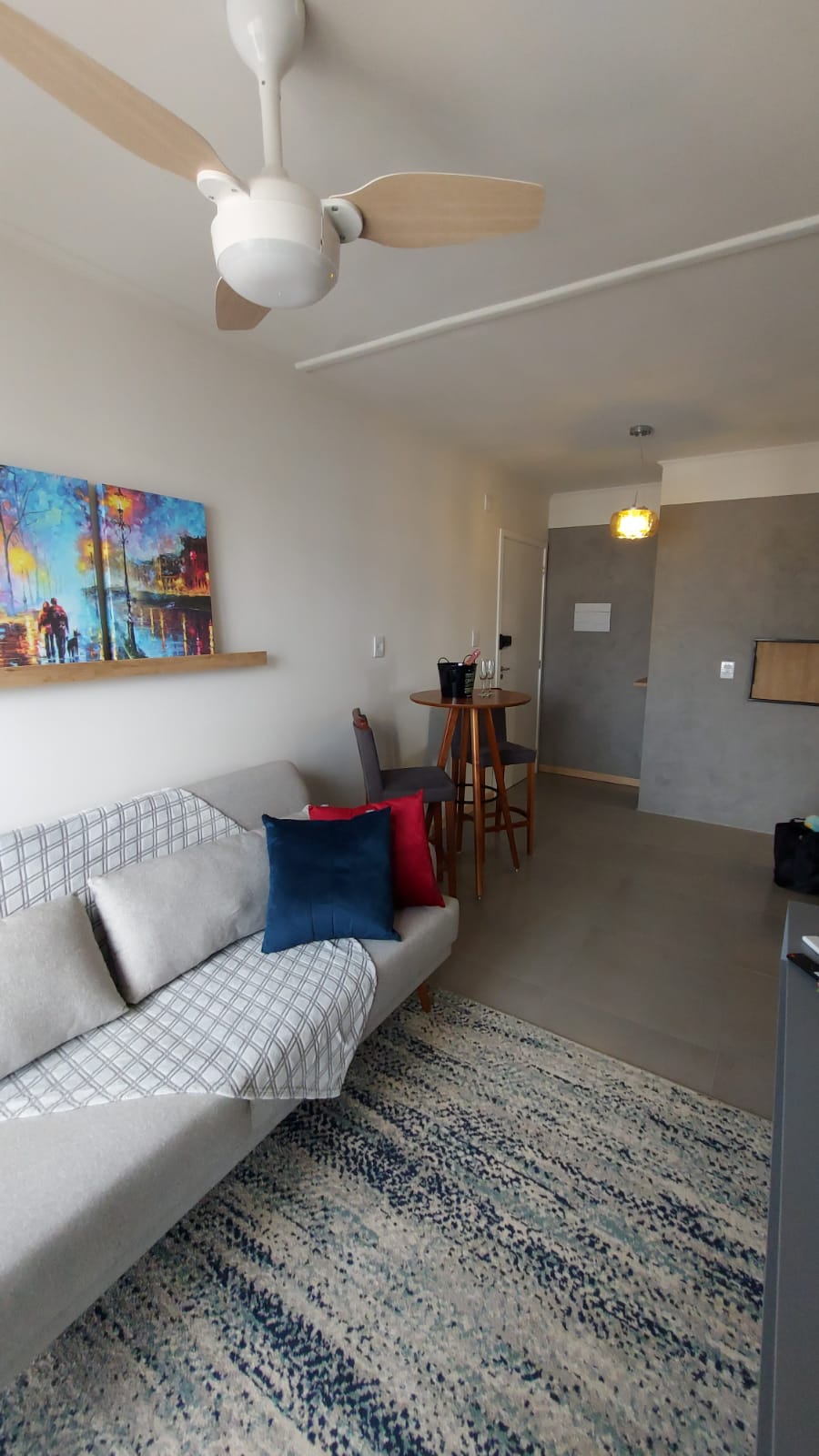 Loft con excelente ubicación en el centro de la ciudad. Cerca de la Av. Bento Gonçalves, supermercados, McDonald's, panaderías y universidades. Fondos del cuartel de la Brigada Militar. Garaje privado con ascensor de acceso al edificio, portería las 24 horas, salón de fiestas y gimnasio. Loft soleado, cómodo y en un lugar seguro. Equipado con cama doble, lavadora, Smart TV, estufa, horno eléctrico, nevera, microondas, aire acondicionado y secador de pelo. Tiene vajilla y ropa de cama. Baño de gas.