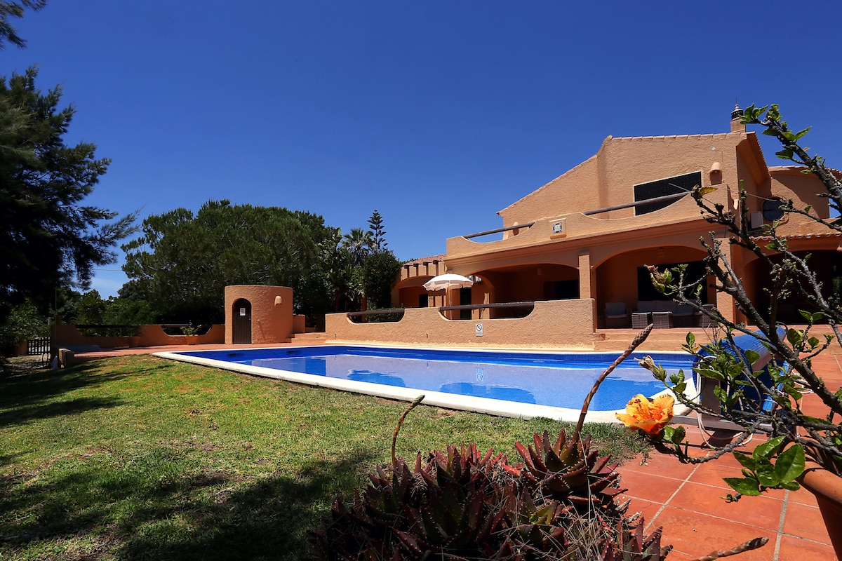 Diese grosszügige Wohn-Villa mit 600m2 Fläche, liegt im Herzen der Algarve und bietet einen aussergewöhnlichen Urlaub. Der neue, riesige, beheizbarer Pool (16x5m) mit Gegenstromanlage, Jacuzzi/Sprudelbad, Terrassen, tollem Meerblick an ruhiger und trotzdem zentraler Lage-das Dorf in 7 Min zu Fuss erreichbar 6 klimatisierte Schlafzimmer mit komfortablen Betten (5 mit eigenem Bad/Dusche), grosse Wohn-, Esszimmer, prima ausgestattete Küche mit Geschirrspüler, Waschmaschine, Backofen, Foodcenter