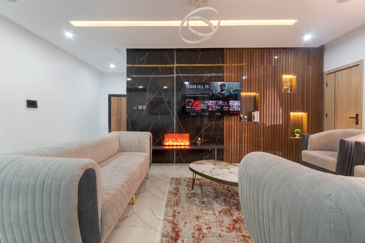 Disfruta de un moderno apartamento de 3 dormitorios con todo lo que necesitas para una estancia cómoda. Esta espaciosa casa cuenta con Wi-Fi, electricidad 24/7, agua corriente limpia y cuatro inodoros privados, que ofrecen comodidad y privacidad para grupos o familias. Ubicado en un vecindario privilegiado y de fácil acceso, disfrutarás de un acceso rápido a restaurantes, tiendas y atracciones clave de la ciudad, por lo que es perfecto tanto para estancias cortas como largas.