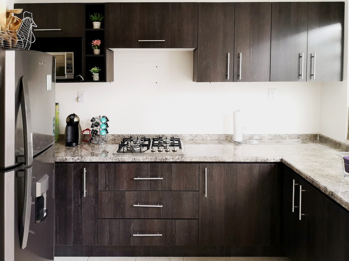 Bienvenidos a nuestro alojamiento completo! 3 Hab 2.5baños Casa en privada, cerca de ZONA INDUSTRIAL Carretera 57 y Carr. Rioverde en San Luis Potosí. Cerca de zona comercial, restaurants, gasolineras, WalMart...Nuestro espacio ofrece 3 recámaras, 2.5 baños, cocina equipada, lava-secadora, terraza y blancos impecables. Disfruta de comodidad y limpieza. Nuestro espacio está totalmente equipado con todo lo necesario para que tu estancia sea perfecta. La factura se emite al término de reservación.