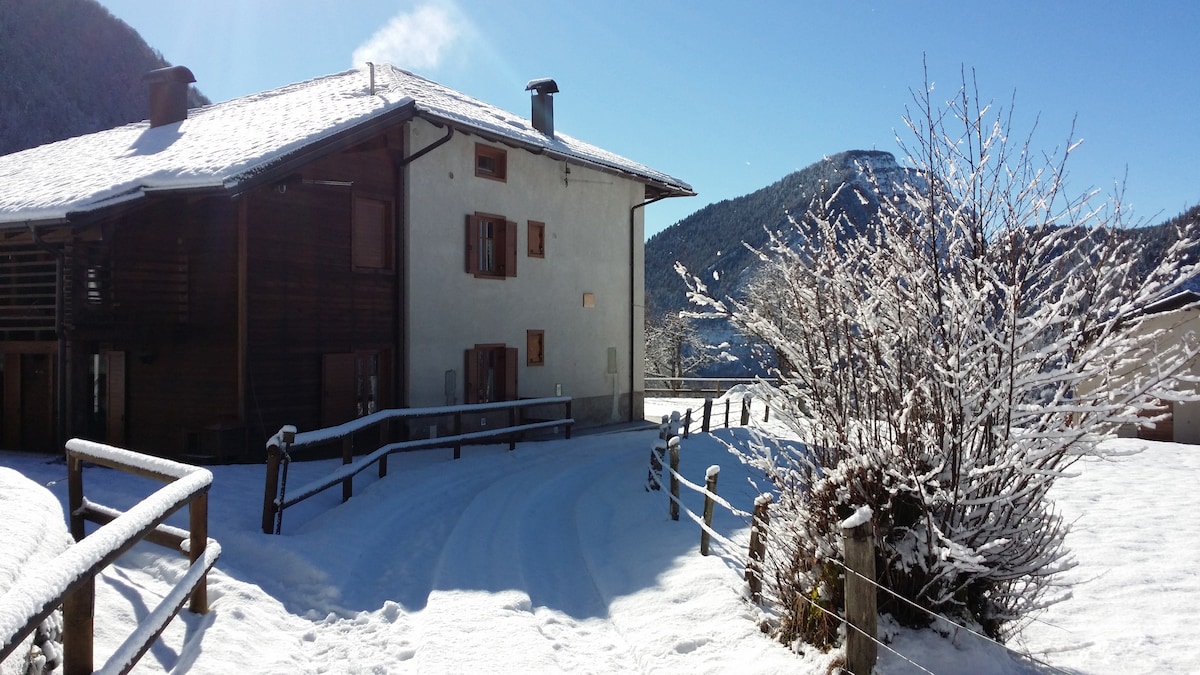 Si buscas un lugar soleado y romántico en el que puedas disfrutar de unos momentos tranquilos y silenciosos a los pies de los Dolomitas (1100mt s/m), nuestra parte de esta antigua casa de campo (150m2) es lo que buscas. Ha sido propiedad de nuestra familia durante más de 200 años y recientemente ha sido renovado por artesanos locales que utilizan muebles antiguos y madera de la zona. El chalet es fácilmente accesible y ofrece todas las comodidades modernas. Se puede disfrutar en verano, así como en invierno.