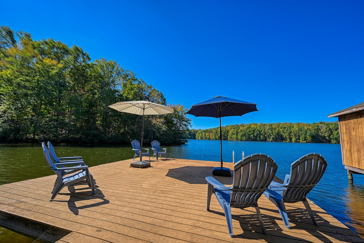 Casa frente al agua con muelle elevado. Entorno tranquilo de la cala con agua profunda y plataforma de natación. La casa tiene 4 dormitorios y tres baños completos. Hay un gran solárium nuevo con aire acondicionado y chimenea eléctrica para cuatro estaciones. El fogón es el lugar de reunión perfecto para las noches frescas. A 5 millas del parque estatal Lake Anna e incluso más cerca de restaurantes frente al agua. Estación de carga eléctrica de nivel 2 proporcionada sin costo adicional. Nuevo edificio de gimnasio agregado para 2026.