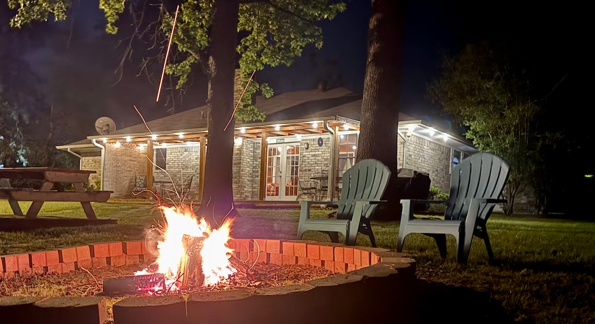 Acogedora cabaña ubicada cerca del lago Bob Sandlin y del muelle privado del barrio. Date un paseo por el estanque y quizás veas un ciervo. Pasa el día en el lago pescando, navegando o simplemente relajándote en los muchos parques cercanos. Termina el día contemplando la puesta de sol, pasando el rato junto a la hoguera o mostrando tus habilidades para la barbacoa en la parrilla al aire libre. ¡Ahora tenemos INTERNET de fibra óptica! ¡También ofrecemos una variedad de películas para que puedas disfrutar del tiempo en familia y tener una noche de cine!