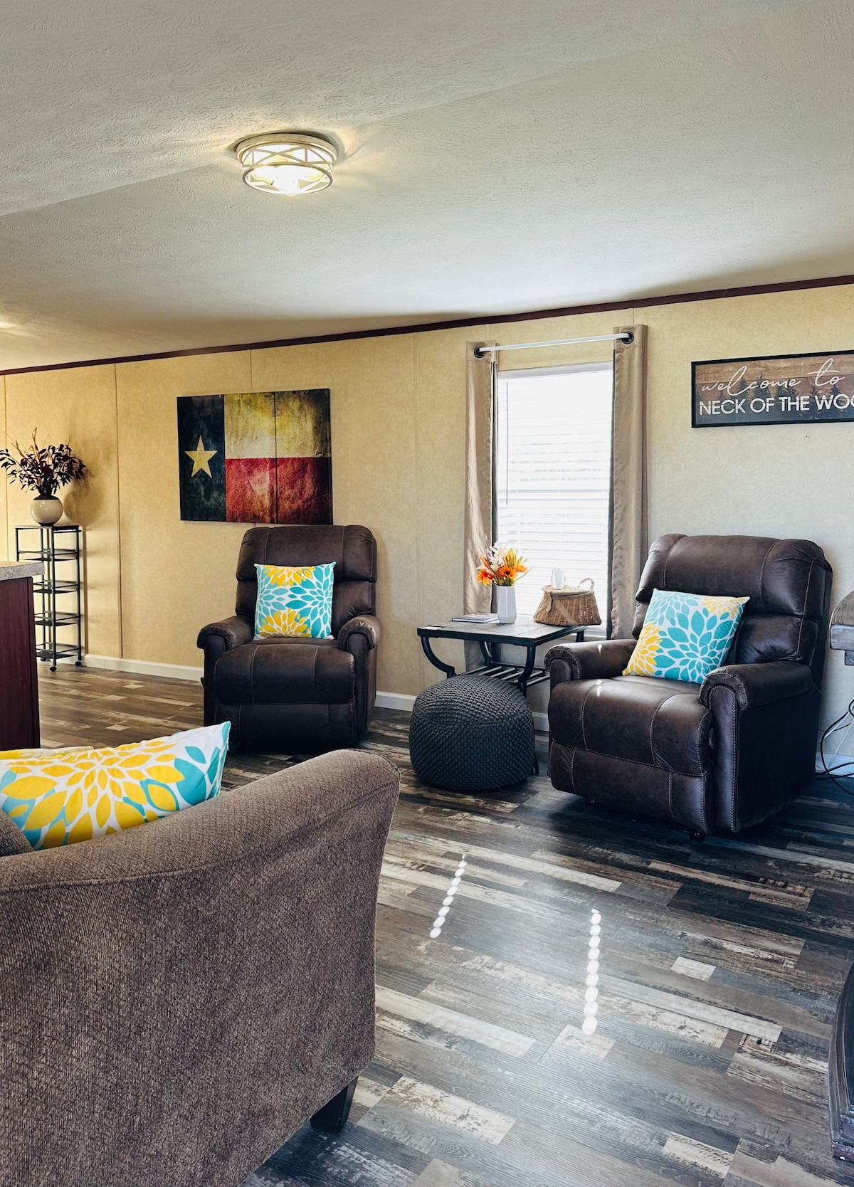 Escape to this cozy 1 bedroom retreat. Perfect for couples or solo travelers, but can host up to 4 people. Nestled in a pecan orchard, this charming space combines modern comforts with a touch of rustic style. Enjoy a fully equipped kitchen, comfy king bed, walk-in shower and a private patio ideal for morning coffee or evening relaxation. Visit us at Alford Family Farm just a short walk away. Seasonal farm activities are offered for an additional fee.