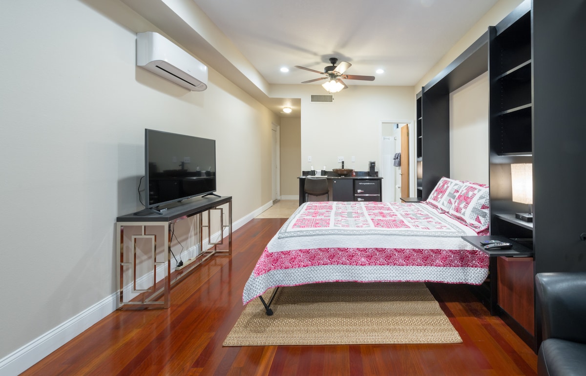 Estudio privado, tranquilo y hermoso escondido a plena vista. Esta es una gran alternativa a una habitación en un hotel de cuatro estrellas por una fracción del costo. Perfecto para el viajero de negocios, consultor, pareja o simplemente para una escapada pacífica para usted o usted y un amigo. Cerca de tiendas, restaurantes, instalaciones deportivas, múltiples áreas del centro en 5 a 15 minutos en cualquier dirección. ¡Este espacioso estudio cuenta con un espacio cómodo y sereno para su tiempo fuera de casa!