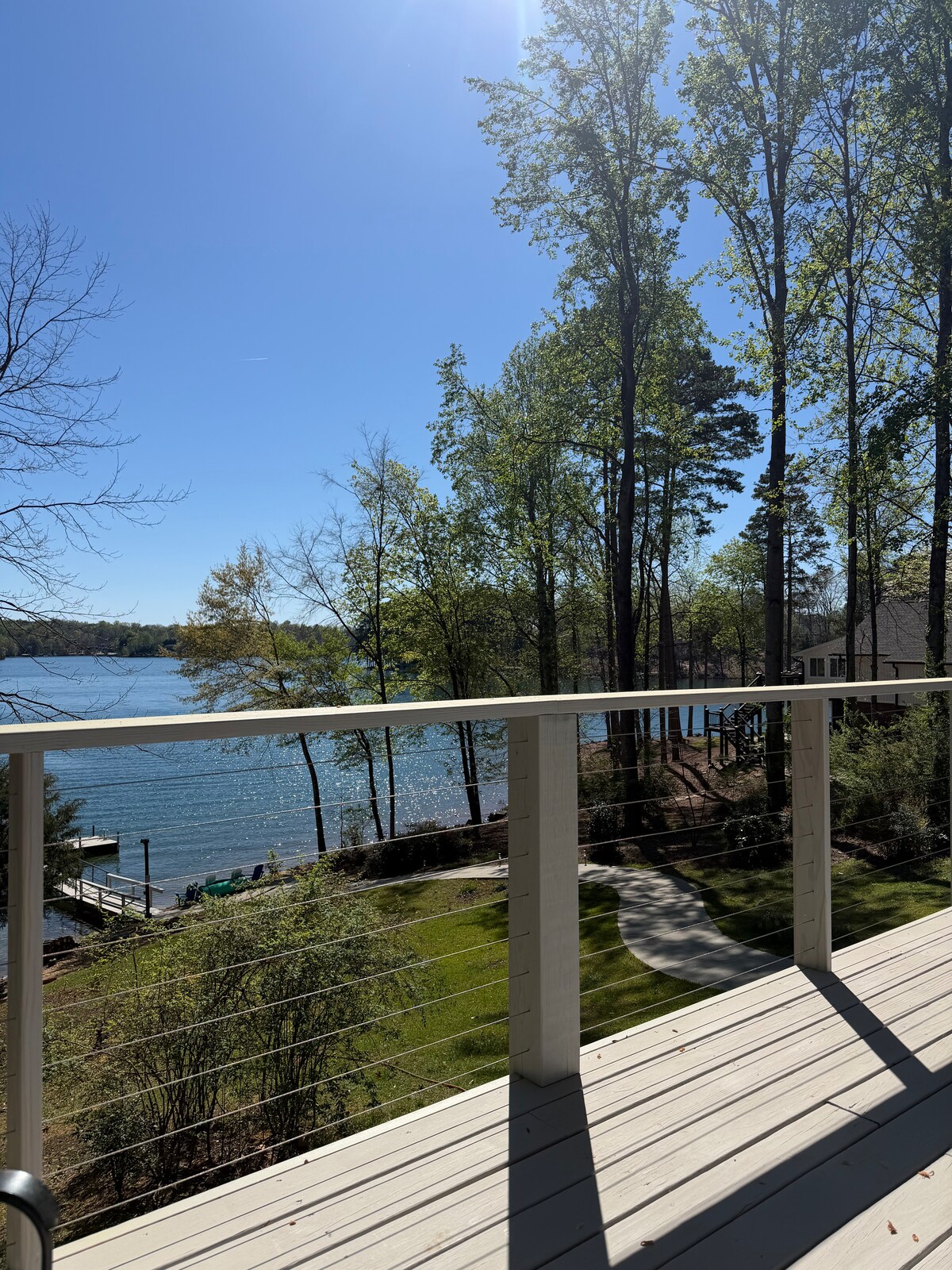 Esta nueva casa frente al mar de 4 dormitorios y 3,5 baños tiene vistas sin obstáculos al gran lago desde casi todas las habitaciones. Tiene capacidad para 12 personas y cuenta con muebles nuevos en todas partes. Hay muchos espacios para pasar el rato y relajarse, incluyendo un solárium, dos habitaciones familiares, dos porches al aire libre y un pozo para encender el fuego. Las actividades del lago incluyen un muelle con embarcadero y elevadores de motos acuáticas, aguas poco profundas para vadear y jugar, aguas profundas para pescar y nadar. Saca los kayaks para remar o saca la colchoneta flotante para divertirte aún más.