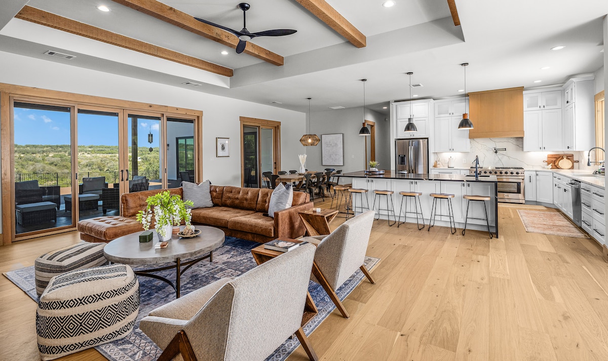 Bienvenido a nuestra granja. Ubicada en 180 acres en Dripping Springs, la villa Nook es una casa moderna de lujo relajante con todos los servicios que puedas necesitar. Decorada en estilo moderno de mediados de siglo y acentuada con piezas antiguas bellamente restauradas. Esta casa está construida en torno a las pintorescas vistas impresionantes de 180 grados orientadas al oeste que se muestran en todos los espacios interiores y exteriores. Relájate en el gran y cómodo sofá, en el lujoso jacuzzi o en el porche cubierto para contemplar las hermosas puestas de sol.