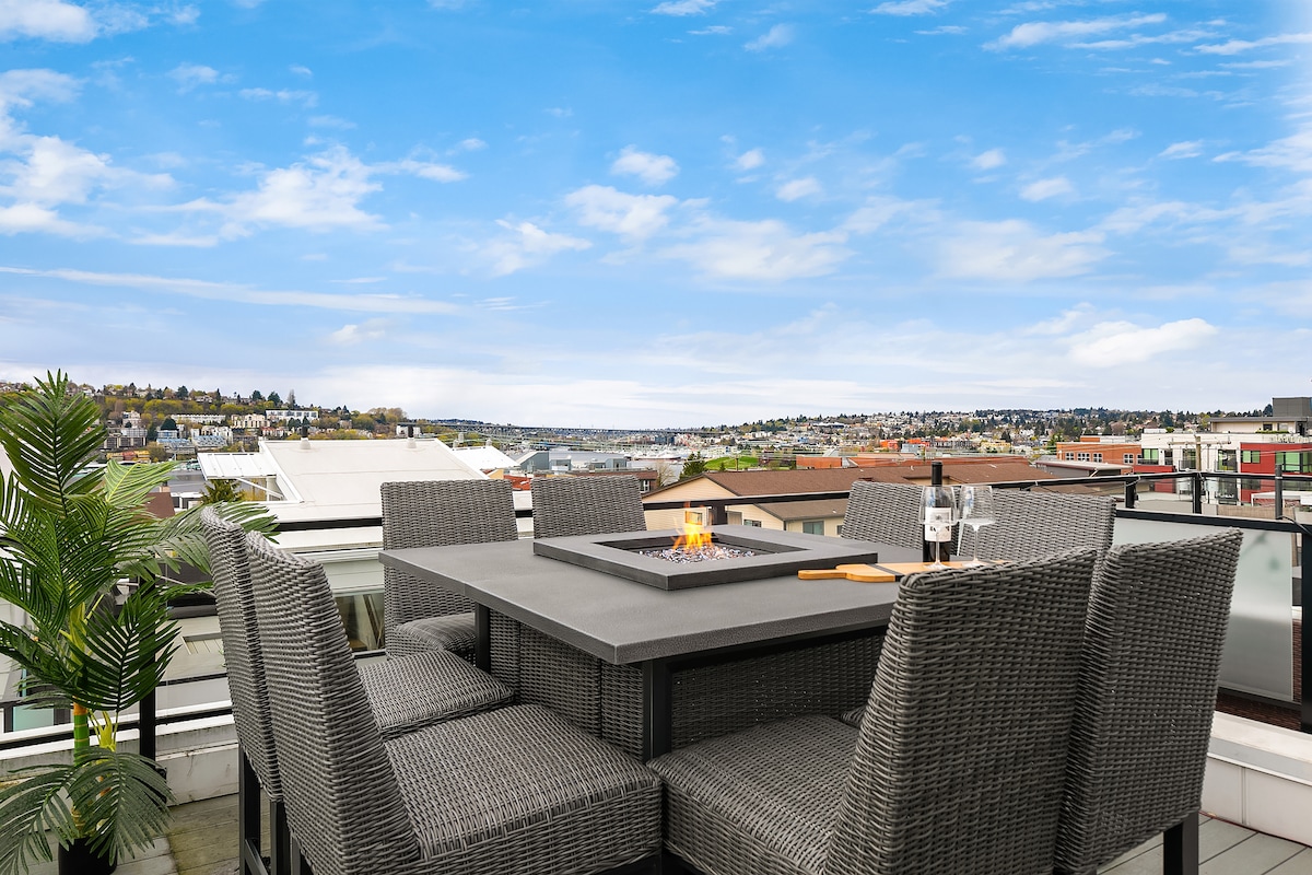¡Experimenta esta increíble casa adosada moderna de 3 pisos y azotea! ¡PERFECTO para aventuras en Seattle durante todo el año!A minutos del centro de la ciudad, atracciones, restaurantes, cafés, estadios, hospitales y rápido acceso a la autopista para desplazarse, deportes, lugares y aeropuerto. ¡La azotea tiene unas vistas impresionantes de la ciudad, el atardecer, la aguja espacial, los Juegos Olímpicos, el parque Gas Works y mucho más! Alojamiento lujoso y con conocimiento no tóxico. ¡Descubre todo lo que esta increíble propiedad ofrece a continuación!