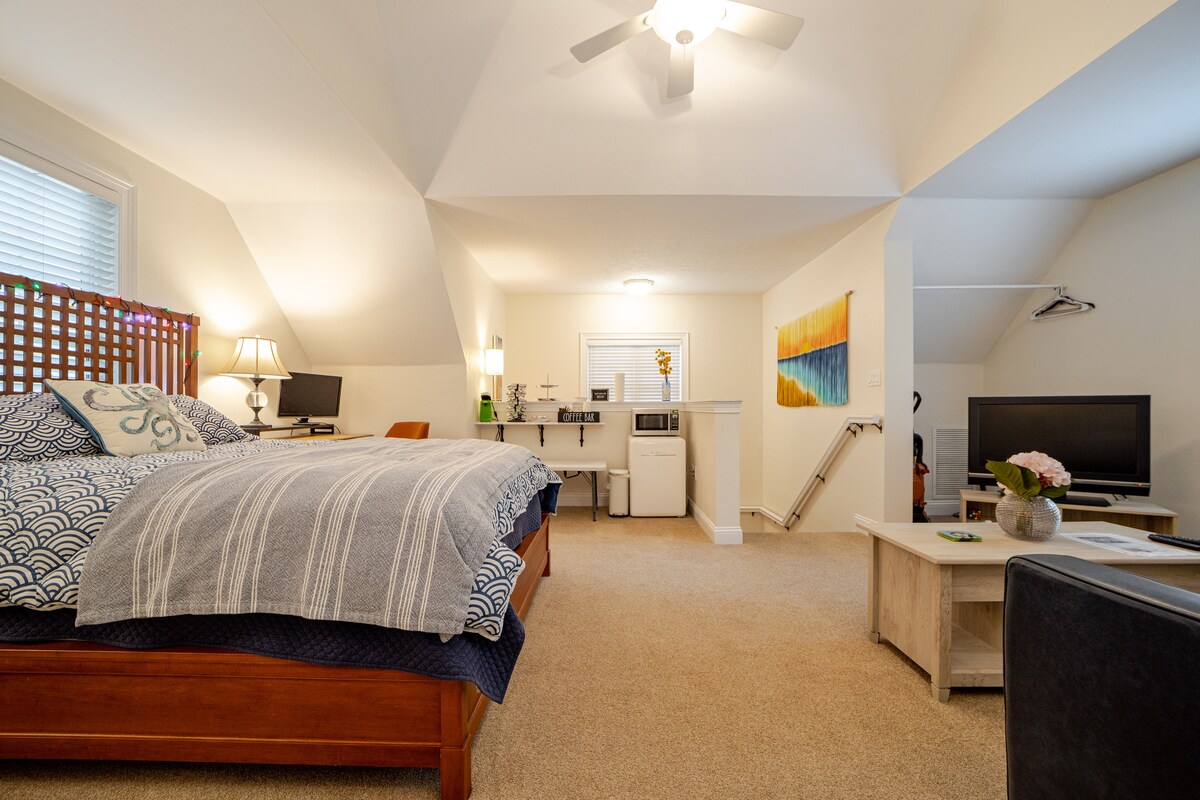 RECIENTEMENTE RENOVADO: disfruta de tu estancia en Gainesville en este moderno estudio de mediados de siglo a 0,5 millas de UF y a 2 millas de los hospitales UF y HCA. No se pasó por alto ningún detalle en esta casa de huéspedes independiente bellamente diseñada con abundante luz natural, acabados exclusivos y un sinfín de comodidades: cocina pequeña, mininevera/congelador, TV inteligente y mucho más. Este espacio privado y tranquilo convenientemente ubicado en el corazón de Gainesville es perfecto para cualquier persona que visite por solo una noche o unas semanas.