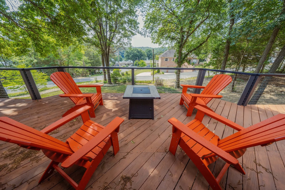 The Treehouse Bungalow was personally renovated and designed by your hosts, Steve and M over the last year. All of the spaces are brand new and exude comfort & peace. From the cozy living room with electric fire place to the spacious deck facing the woods. You will find several, separate areas to make your own. We encourage you to take a break in the soaker tub or grab a book and lounge in the king size bed master. The bike trails, golf, and lakes all around. Come visit NWA and be our guest!