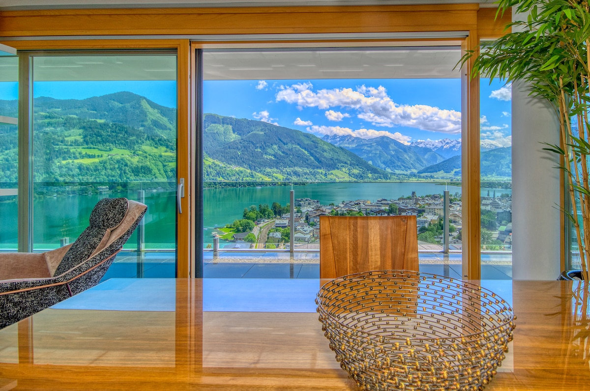 “Mi reino del cielo”, así es como llamo mi apartamento. Como se puede ver, he elegido los muebles y materiales con mucho amor. No solo el apartamento, sino también la ubicación es un sueño: a pocos minutos a pie del centro y los teleféricos y, sin embargo, en absoluta tranquilidad, elevado sobre los tejados de Zell am See con espectaculares vistas al lago y las montañas. ¡Una verdadera joya! En la casa hay un pequeño oasis de bienestar esperando, frente a la puerta una hermosa ruta de senderismo... Solicita rápidamente:-)
