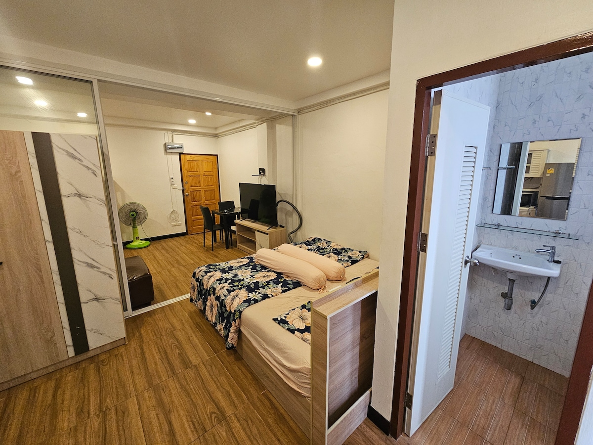 Welcome to our contemporary studio in Rangsit, Pathumthani. It's about 10 km to Don Mueang Airport, perfect for travelers. Featuring a cozy queen bed, a bathroom, and kitchenette, it ensures a stress-free journey to catch your flight. With convenient access to both the airport and nearby attractions, it's your ideal affordablt home near Bangkok. Book now for a comfortable and stylish stay!