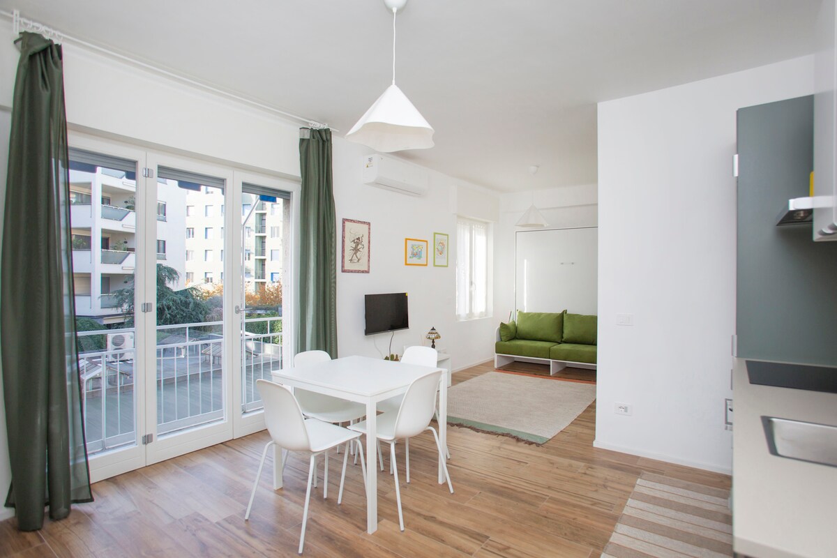 Descubre Milán desde un elegante apartamento de diseño con un gran balcón y acceso rápido a Internet de fibra: tu refugio perfecto para trabajar o relajarte. Con vistas a un tranquilo jardín, cuenta con interiores modernos y un espacio de trabajo dedicado, mientras que el balcón es perfecto para el café de la mañana o un aperitivo por la noche. Ubicado en un prestigioso complejo residencial, cerca del metro, con fácil acceso al centro de la ciudad y al aeropuerto de Linate. Perfecto para estancias de negocios o de placer: relájate con una copa de vino después de un día en Milán