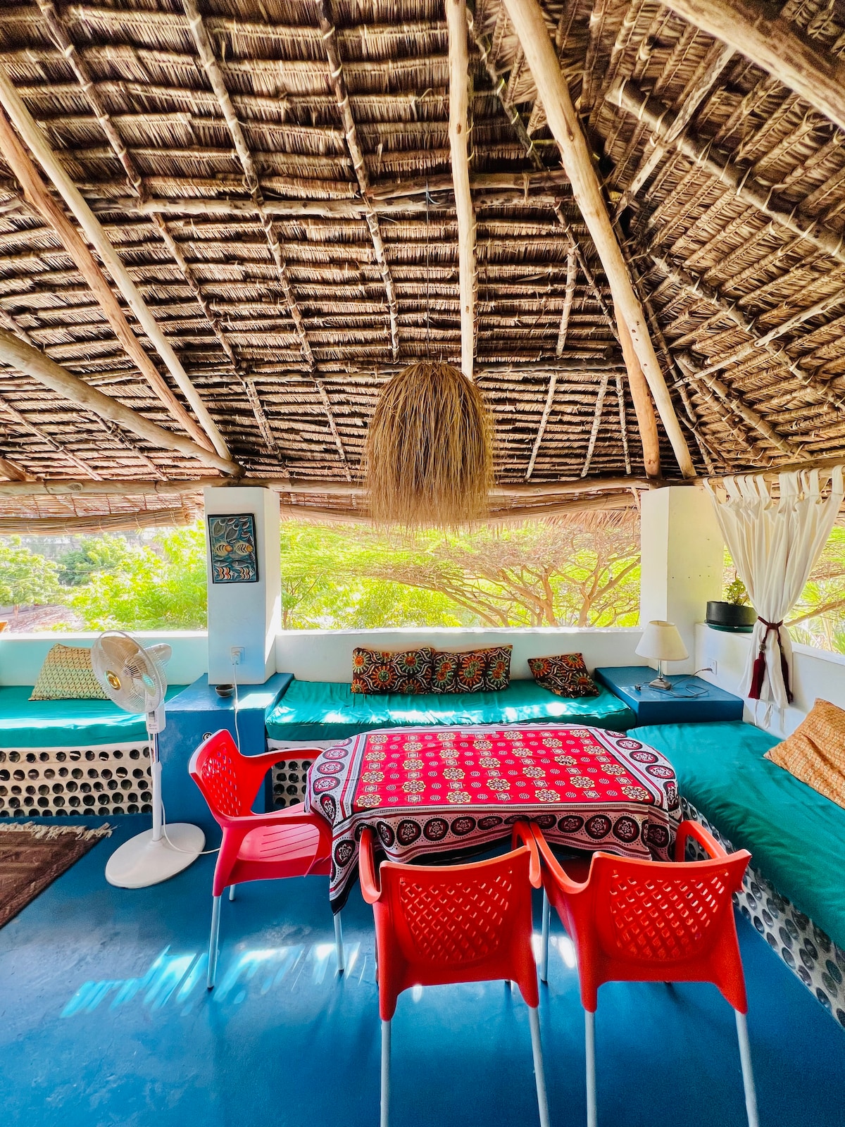 Relájate en este encantador apartamento de 1 dormitorio en el corazón de Shela, Lamu. Disfruta de una cocina abierta y un comedor que desemboca en una terraza privada (Baraza), perfecta para relajarse después de un día de playa. Tiene acceso a la terraza de la azotea de Makuti con bancos y una acogedora cama columpio. Sencillo, espacioso y auténtico estilo suajili para una estancia tranquila.