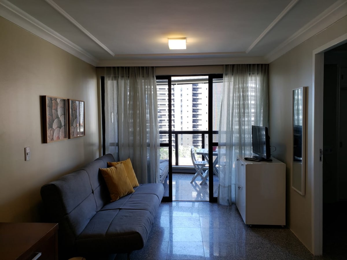 Precioso apartamento, todos con aire acondicionado, diseñado para ofrecer una experiencia de hospedaje súper agradable. ¡El gran y acogedor balcón nos proporciona una relajante vista al mar! Y el condominio también ofrece la infraestructura de ocio más completa de la costa de la capital de Ceará con piscina cubierta y descubrimiento, gimnasio, squash, sauna, jacuzzi, sala de juegos y parque infantil.
