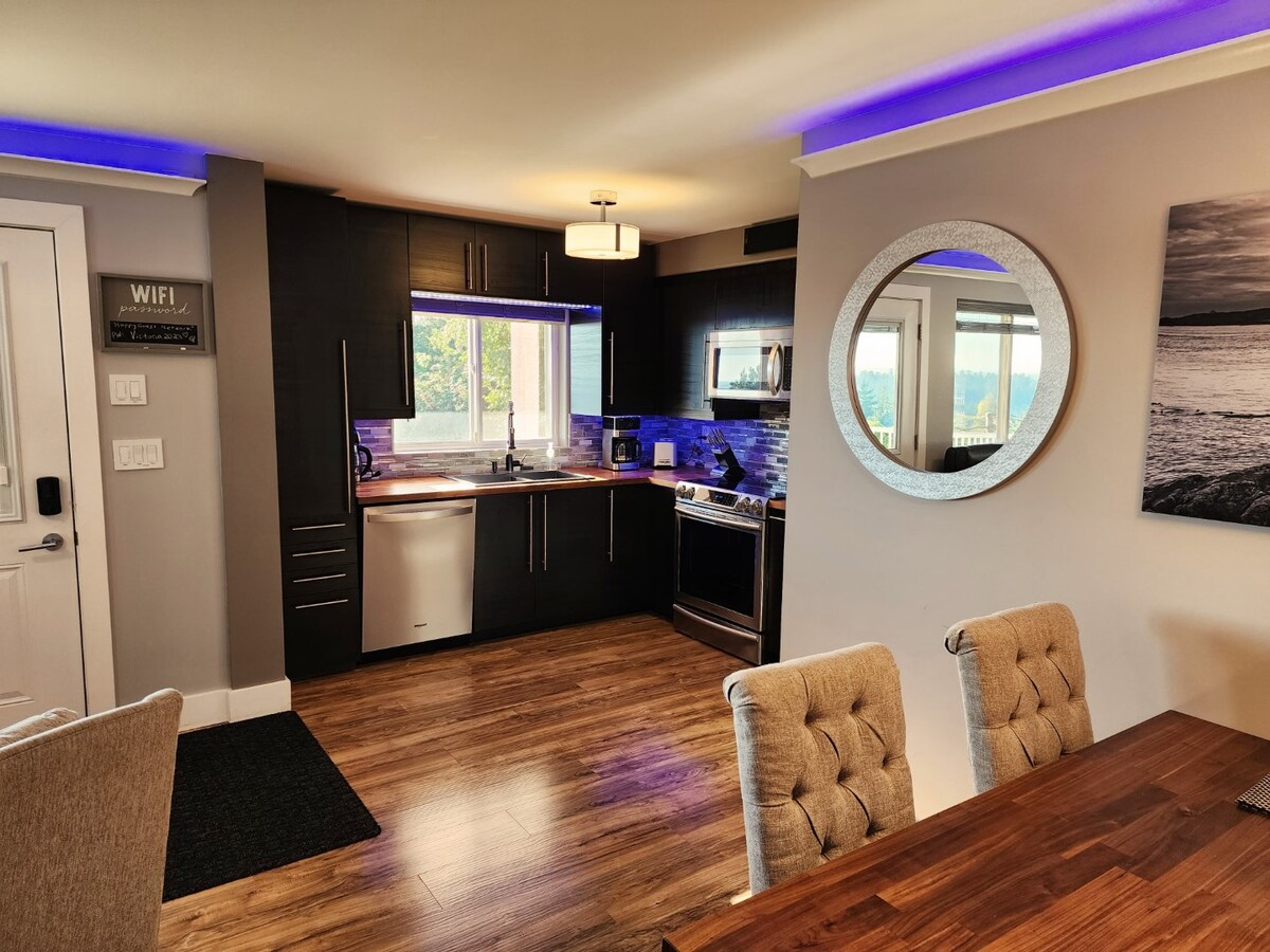 Hermosa suite con jardín legal totalmente contenida ubicada en las afueras de Langford. Estacionamiento disponible en nuestra entrada, a pocos pasos de la entrada privada con entrada con teclado. Incluye Netflix, WIFI, lavandería en la suite y una cocina totalmente equipada. Si amas la naturaleza mientras tienes todos los lujos de las compras y los servicios, este es el lugar ideal para ti. Se permiten perros con un cargo de $20 por perro por noche, lo sentimos, no se permiten otros animales. Es una casa familiar y vivimos arriba, es posible que escuches pasos de niños pequeños.