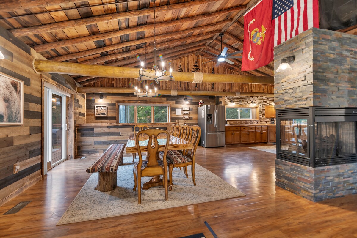 Olvídate de tus preocupaciones en esta espaciosa cabaña de la ciudad, un río que atraviesa el patio trasero. Mucho espacio para una gran reunión. Acceso a senderos para vehículos todoterreno/motos de nieve desde el patio. Cerca de excelentes lugares de pesca, senderismo, tenis y un parque infantil para los más pequeños. A minutos del Casino Potawюi. Tiene capacidad para 12 personas con 4 dormitorios más un loft con una cama y un sofá cama en la sala de estar. Hay 2,5 baños, una gran cocina y una mesa de comedor. Mesa de billar, tablero de dardos y televisores inteligentes en todas las habitaciones.
