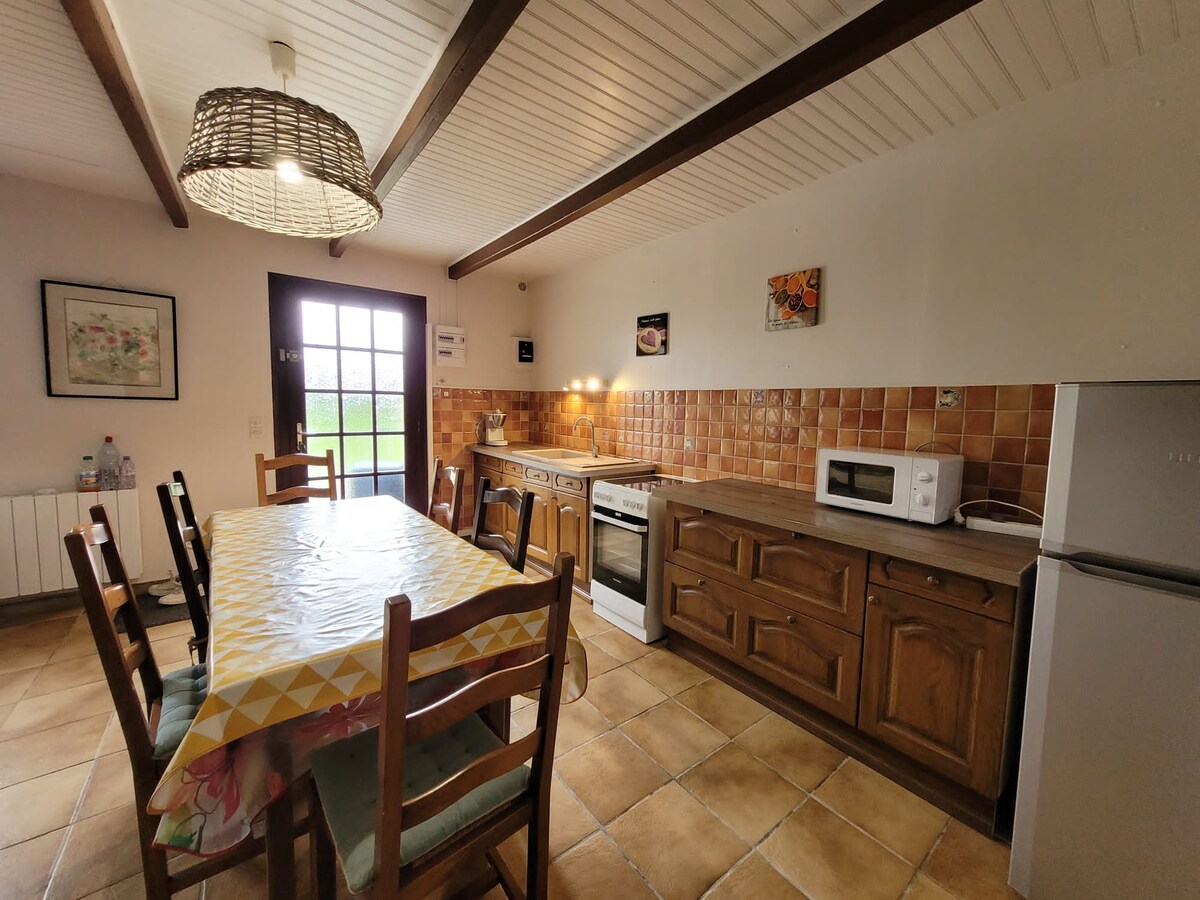 Para familias o pequeños grupos de amigos, este antiguo establo consta de una sala de estar con cocina equipada, salón, comedor y cuarto de baño con ducha e inodoro. Arriba, dos dormitorios con camas dobles, un dormitorio con camas individuales, así como un baño y un aseo separado. Un espacio exterior privado para disfrutar de los mediodías soleados. El plus: una sala de juegos para grandes y pequeños ¡Una ubicación ideal para descubrir la zona en cualquier época del año!