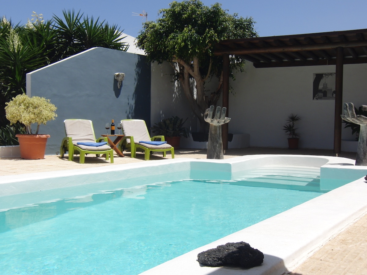 A 25' de l'aéroport, Tinajo est un village authentique, situé au dessus du village de pêcheurs de La Santa,très connu pour ses spots de surf...L'appartement doté d'une grande terrasse,offre une vue imprenable sur le volcan rouge et la"droite" de La Santa...Le jardin permet de vous garer et d'entreposer du matériel (surf/kite/ailes delta) en toute quiétude. Notre logement est parfait pour 1 ou 2 couples , les familles (avec enfants) ou un groupe d'amis.Par choix, nous n'avons pas de télévision!